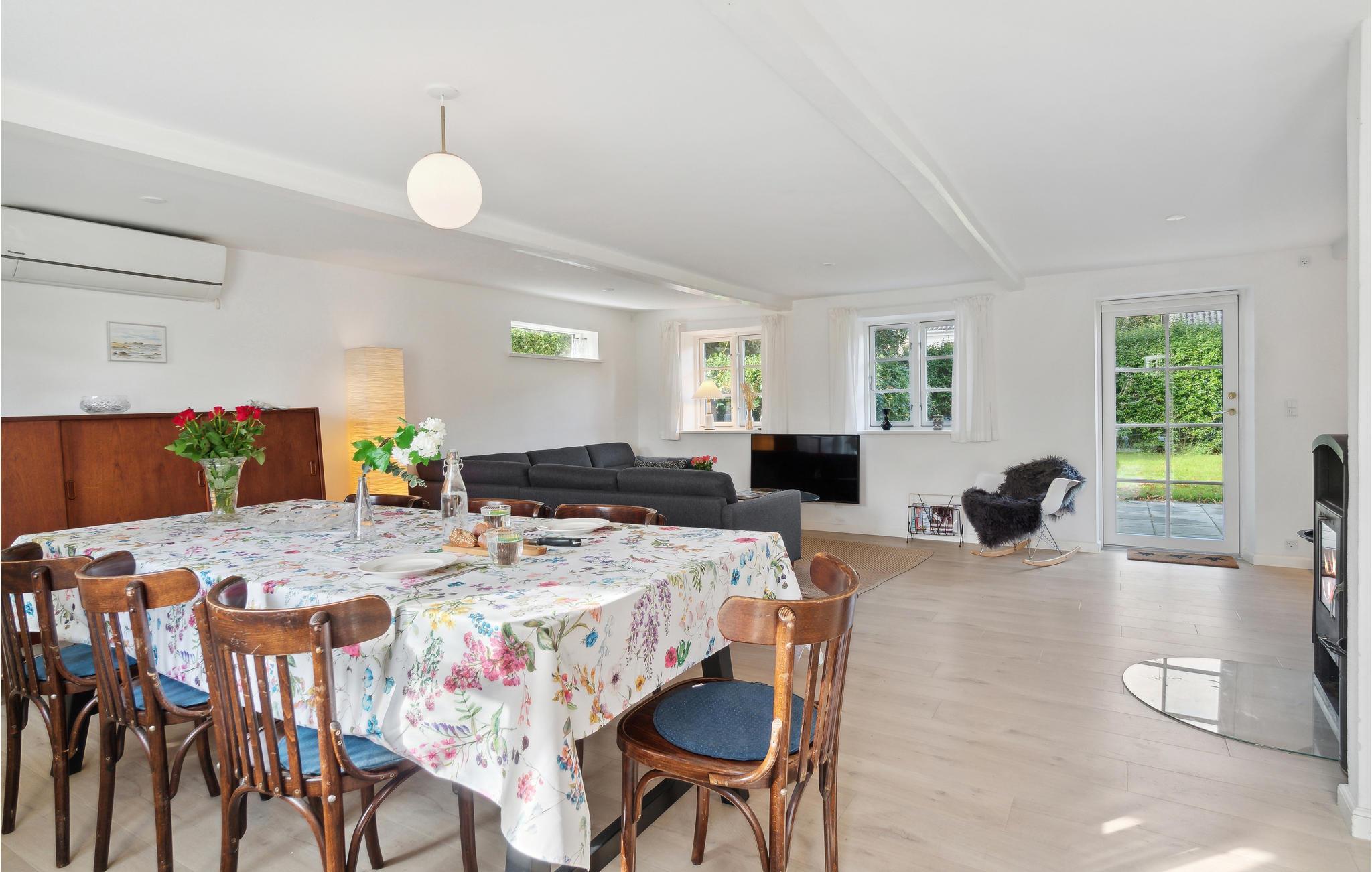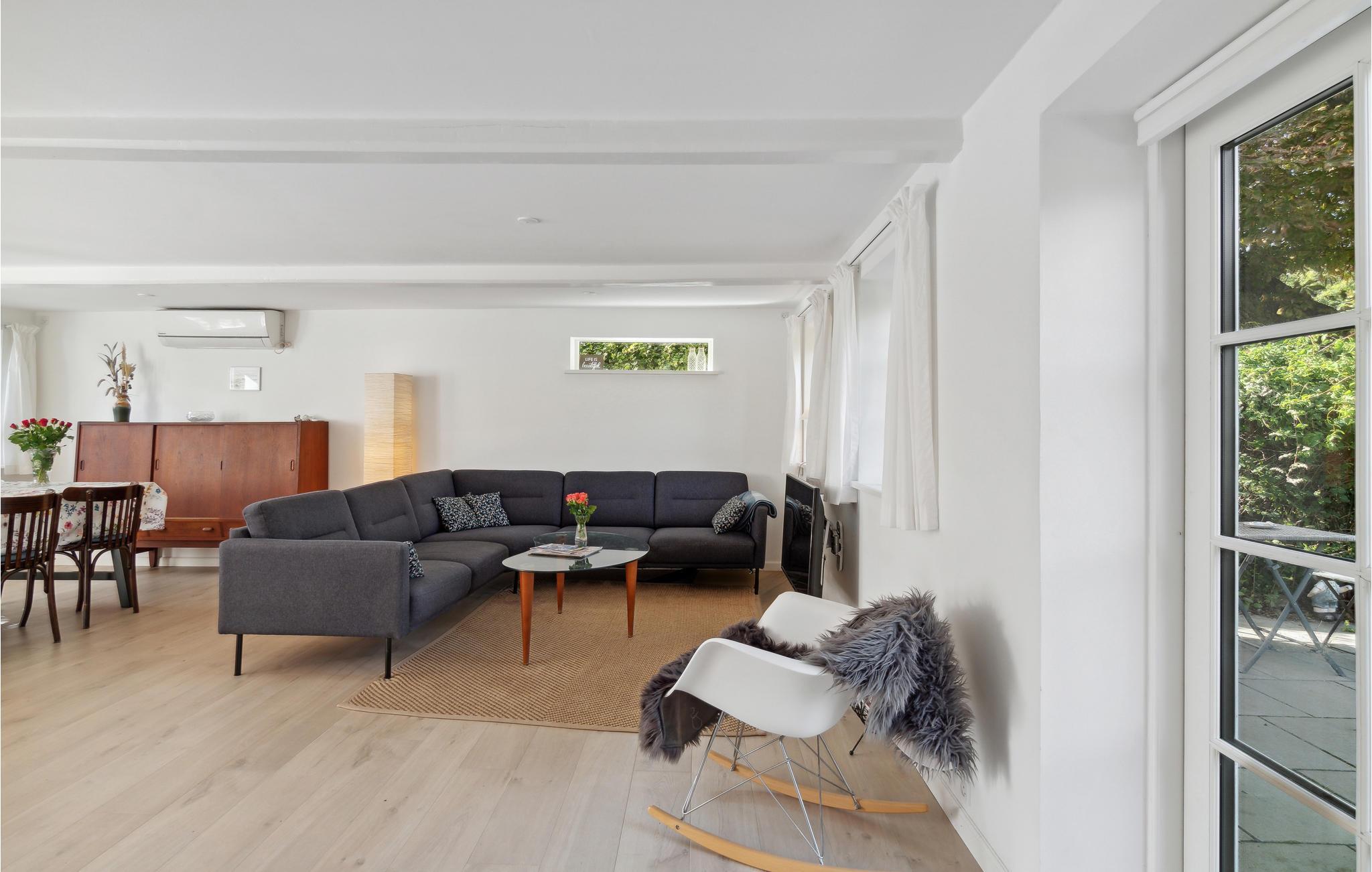 Det moderniserede landsbyhus byder jer velkommen med den perfekte blanding af originale detaljer og moderne faciliteter. Føl jer godt tilpas i de lyse, smagfuldt indrettede lokaler, som byder på masser af plads til en hyggelig samvær. Efter at have spist sammen, kan I sætte jer godt til rette sammen i sofaen, læse en historie, mens brændeovnen knitrer, eller spille et spil sammen og slutte dagen af ??i fred.