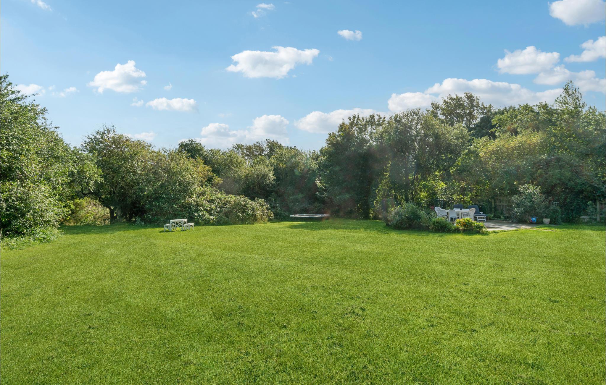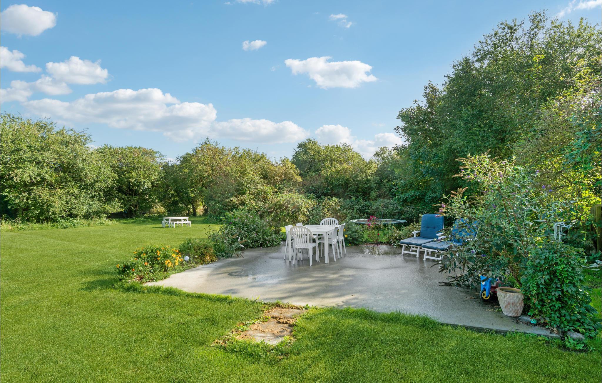 Jeres børn har masser af plads til at lege på ejendommen, hvad enten det er på gyngen eller i sandkassen. Slap af med en bog og en kold drink på solterrassen midt i haven og se de små hoppe vildt på trampolinen.