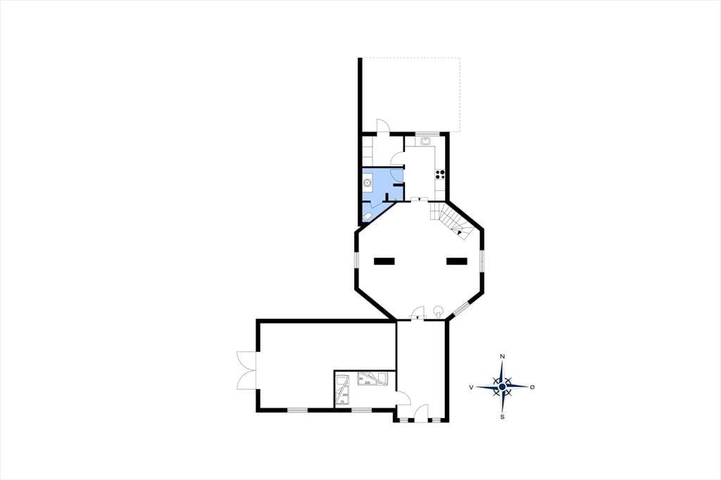 I stueetagen er køkkent placeret, ligesom spisekrogen og et badeværelse. I entreen er der vaskemaskine og tumbler.
