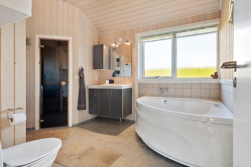 Hyggeligt sommerhus i Øster Hurup med sauna, spabad og børnevenlige faciliteter tæt på stranden.