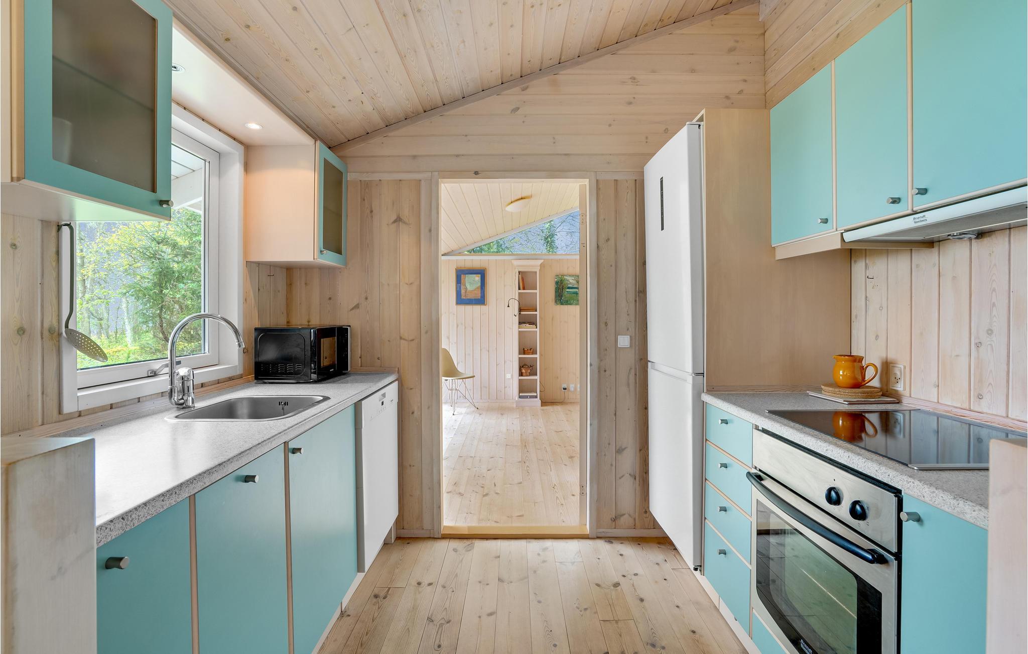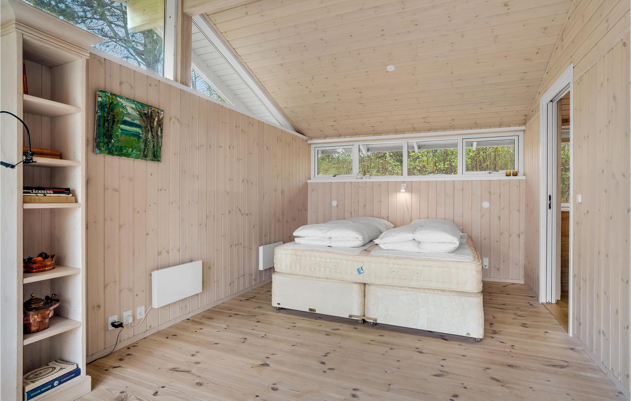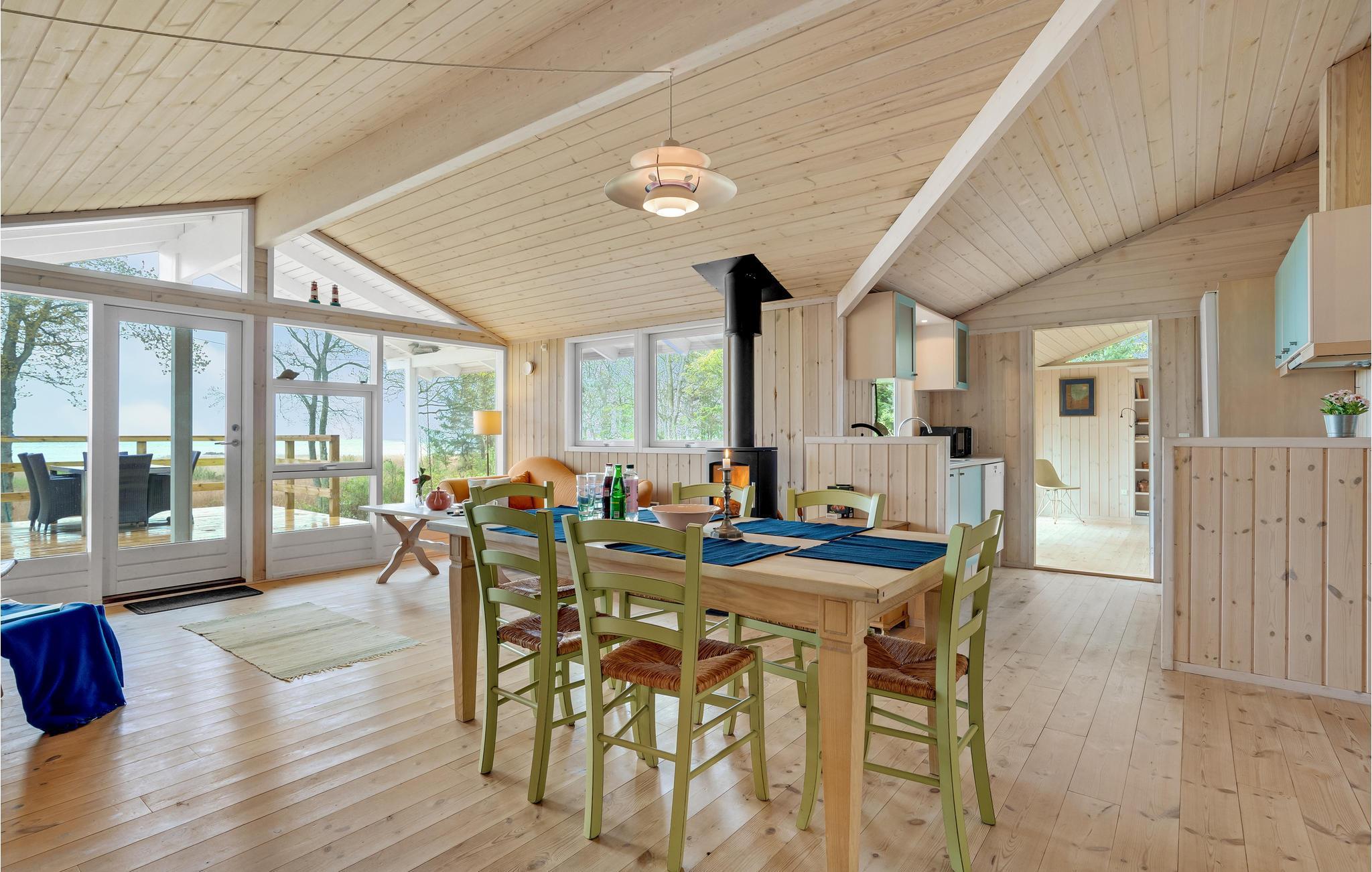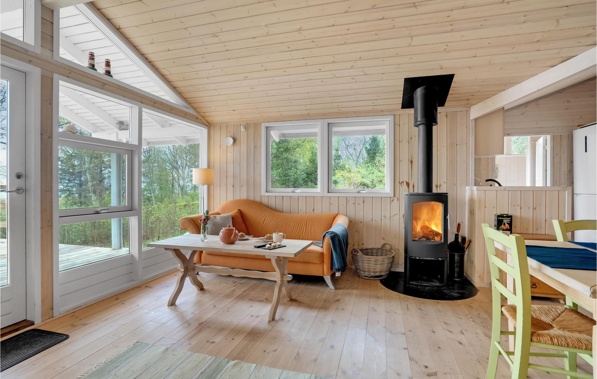 Sommerhuset er komfortabelt indrettet og skaber ideelle rammer for et ophold, I vil huske med glæde i lang tid. Store vinduer giver et dejligt lysindfald. Der er behagelig gulvvarme på badeværelset. Om aftenen kan I hygge jer foran brændeovnen og lytte til flammenes knitren.