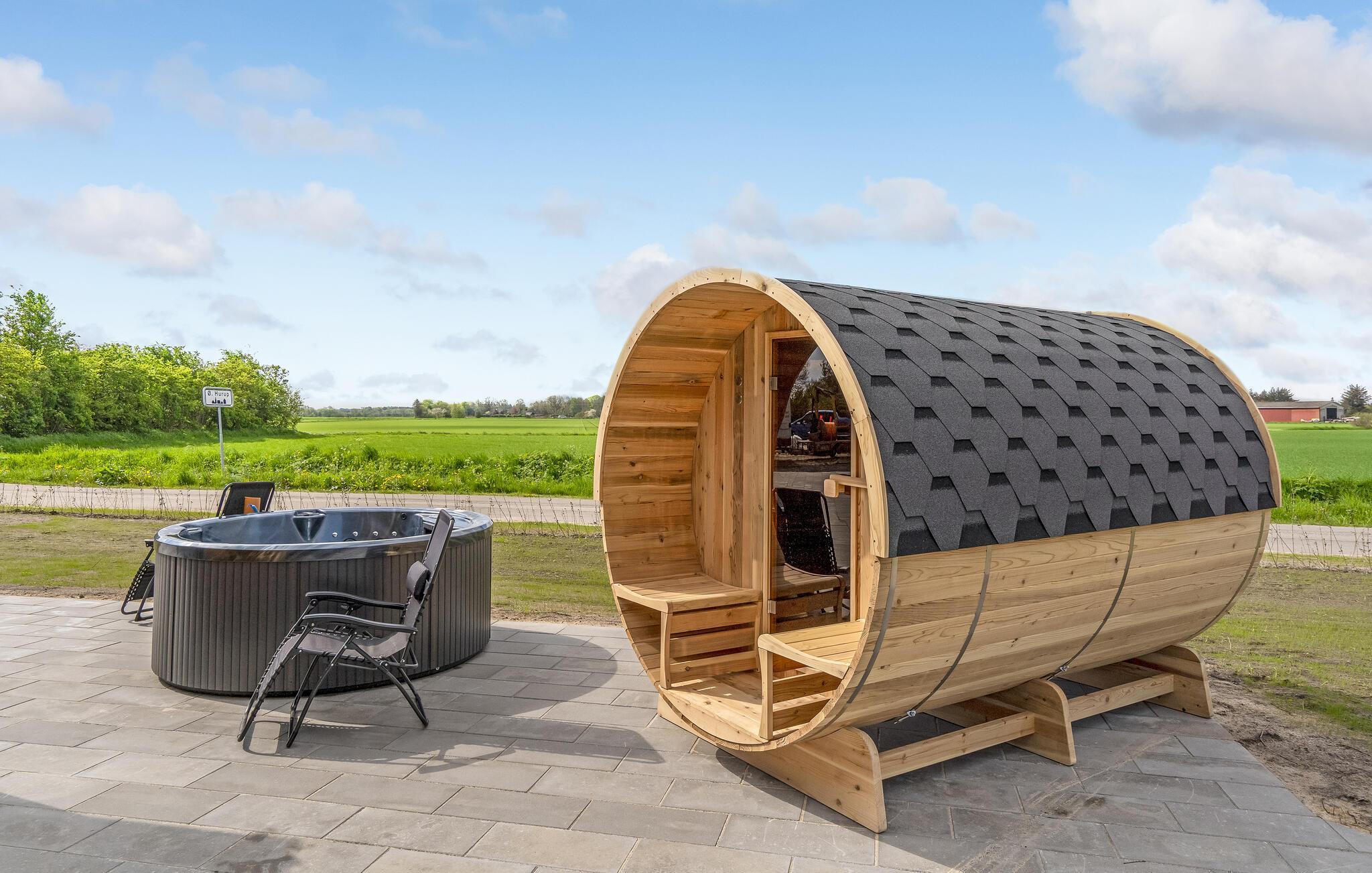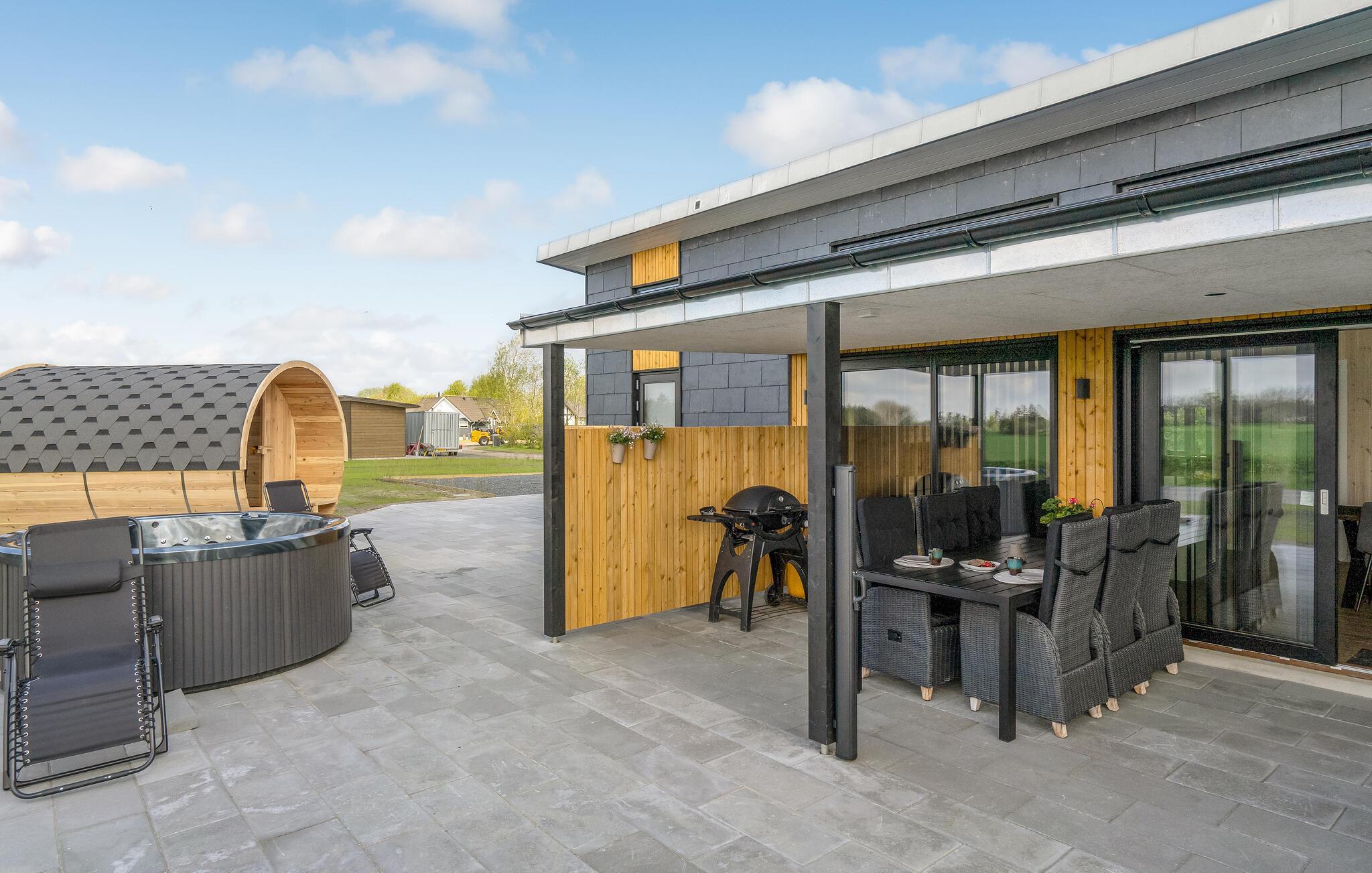 Velindrettet og moderne sommerhus ved Øster Hurup Strand med spa, sauna og stor terrasse.