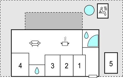 Opholdsstuen har forbindelse til en delvist overdækket terrasse med havemøbler, hvor I kan nyde den friske luft og solens varme. På græsplænen kan I hygge jer med kroket eller et vikingespil.