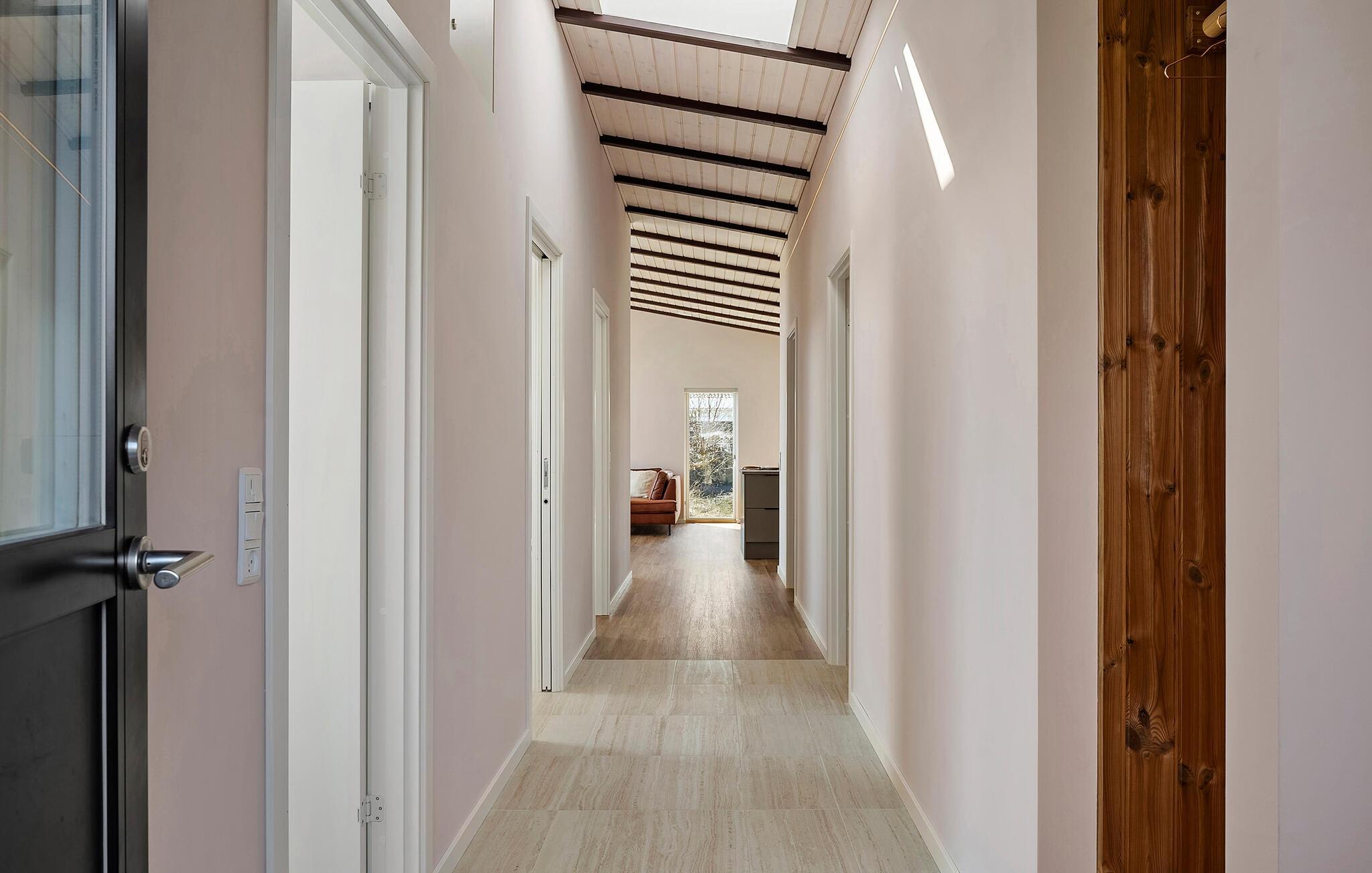 Velkommen til dette lyse feriehus, som kun ligger nogle få skridt fra den fine sandstrand. Den klare arkitektur og det sofistikerede design skaber den perfekte balance mellem skandinavisk hygge og moderne komfort. Den åbne opholdsstue med højt til loftet, store panoramavinduer og elegante sofahjørne lægger op til afslappende timer. Læs en god bog her, eller hav en hyggelig filmaften. Den vide udsigt til horisonten bringer naturen ind i huset. Morgenen starter behageligt ved det rustikke spisebord med udsigt over haven. Det lyse, moderne køkken flyder problemfrit ind i opholdsstuen og er ideelt til fælles madlavning og lange aftener med god mad. I kan også glæde jer til afslappende timer i husets sauna.