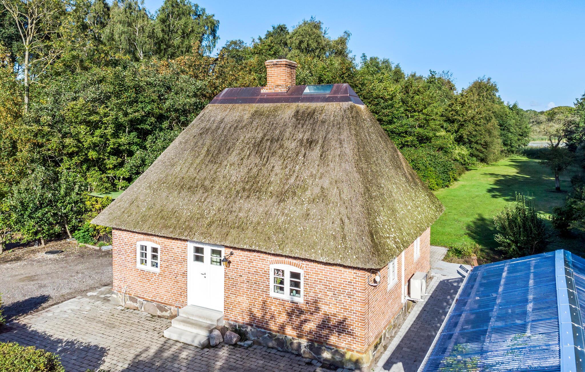 Charmerende stråtagshus ved Røgbølle Sø med moderne faciliteter og smuk natur på Lolland.