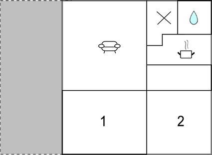 Badeværelse (nr. 1) - WC. Varmt og koldt vand. Bruser