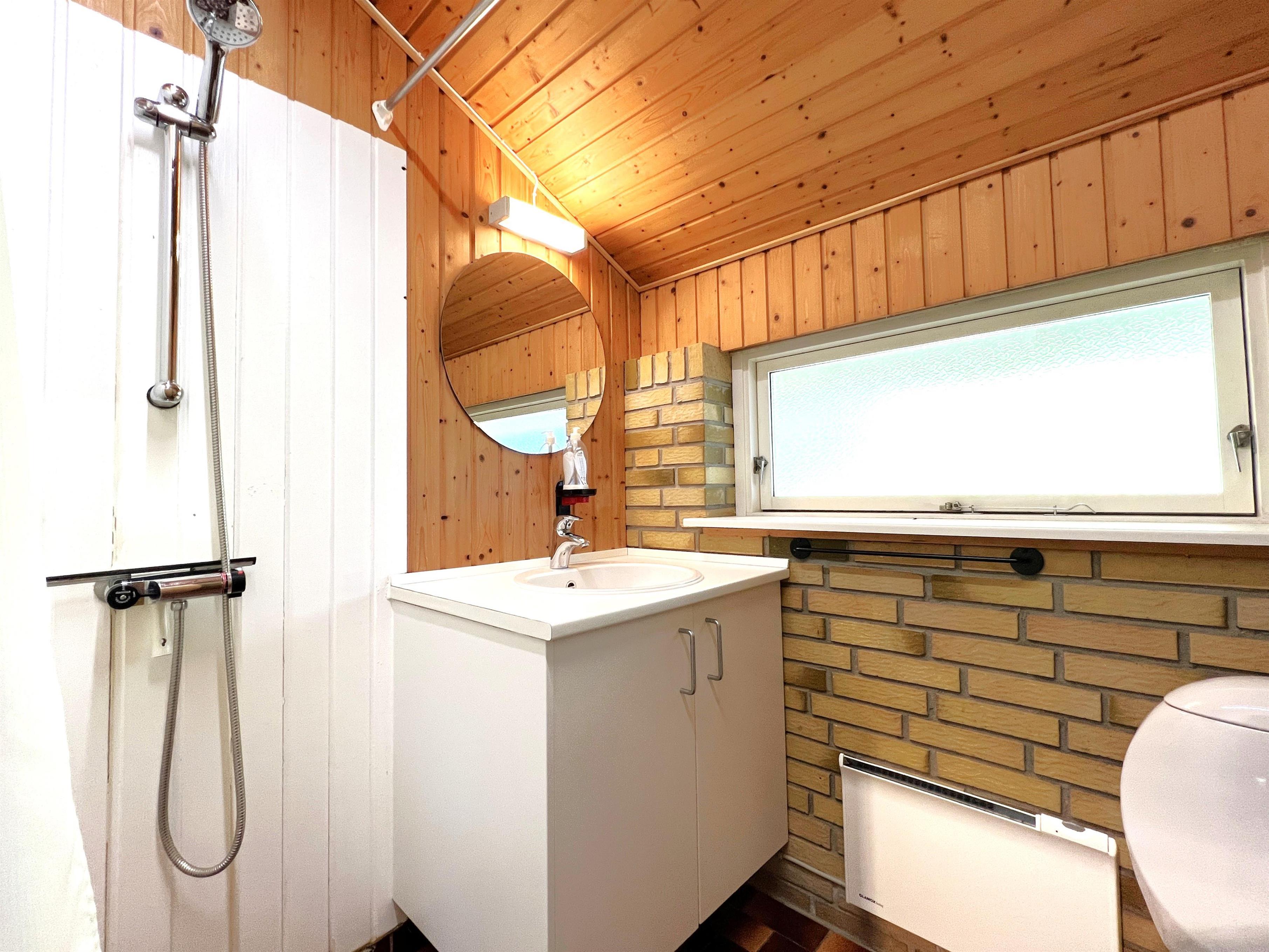 Badeværelse med brus. Terrassen er delvis overdækket. I dette hus er du i et med naturen og tæt på stranden. Fin overdækket terrasse med grill. Man er i cykelafstand til Østerbys hyggelige havnemiljø, der byder på den lokale købmand, fiskehandler, restauranter, badestrand og meget mere.
