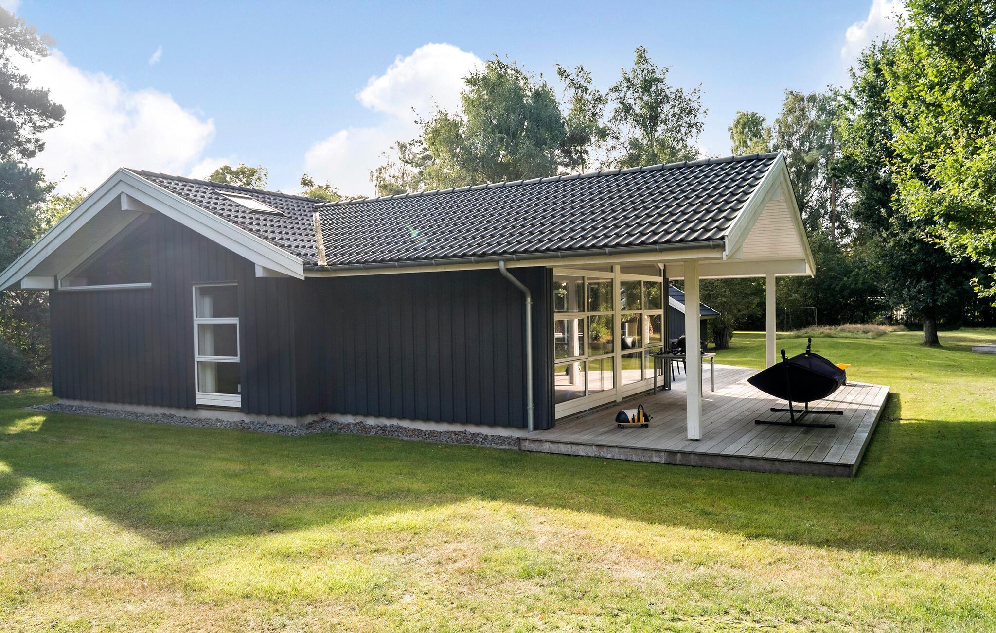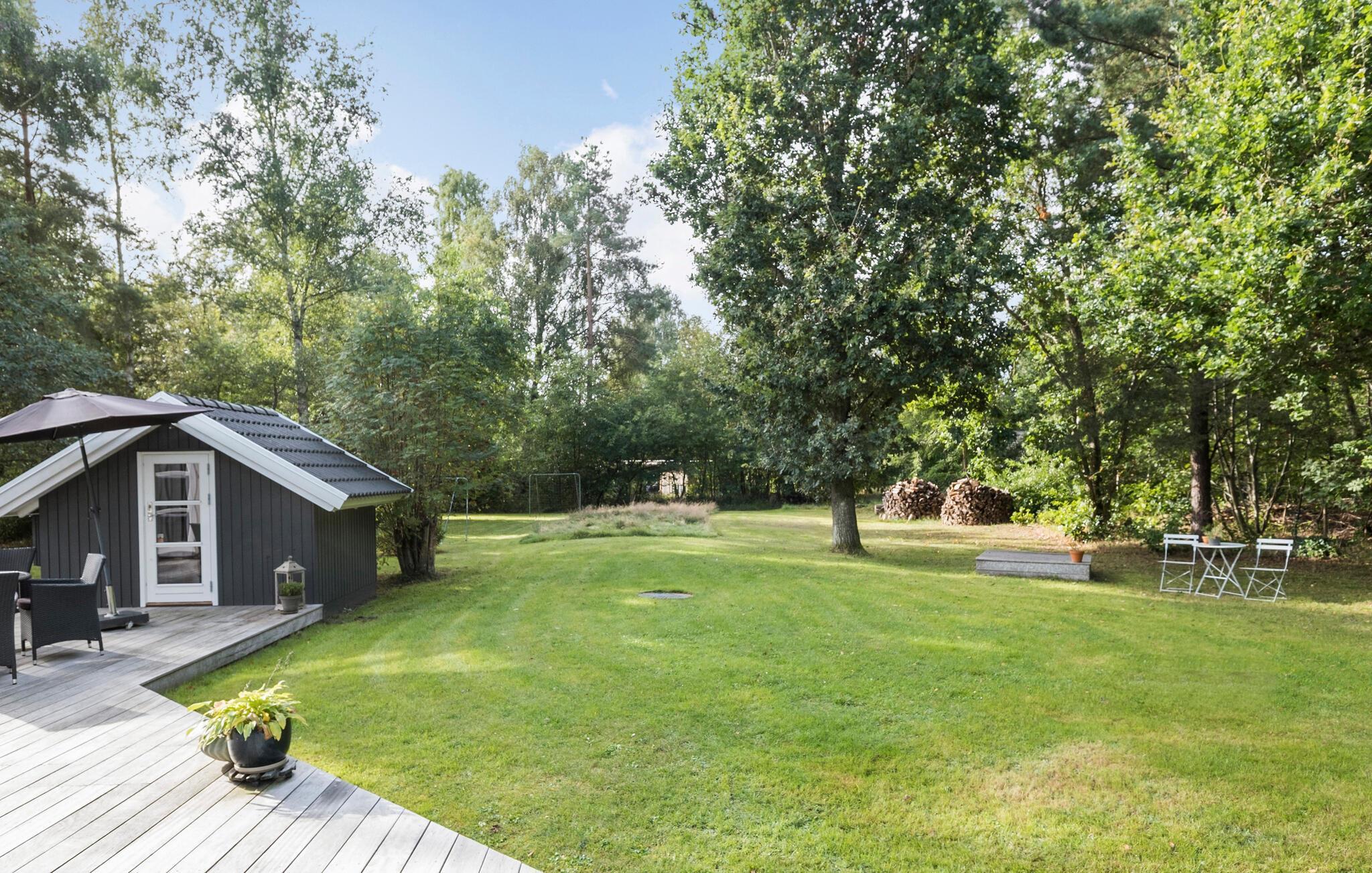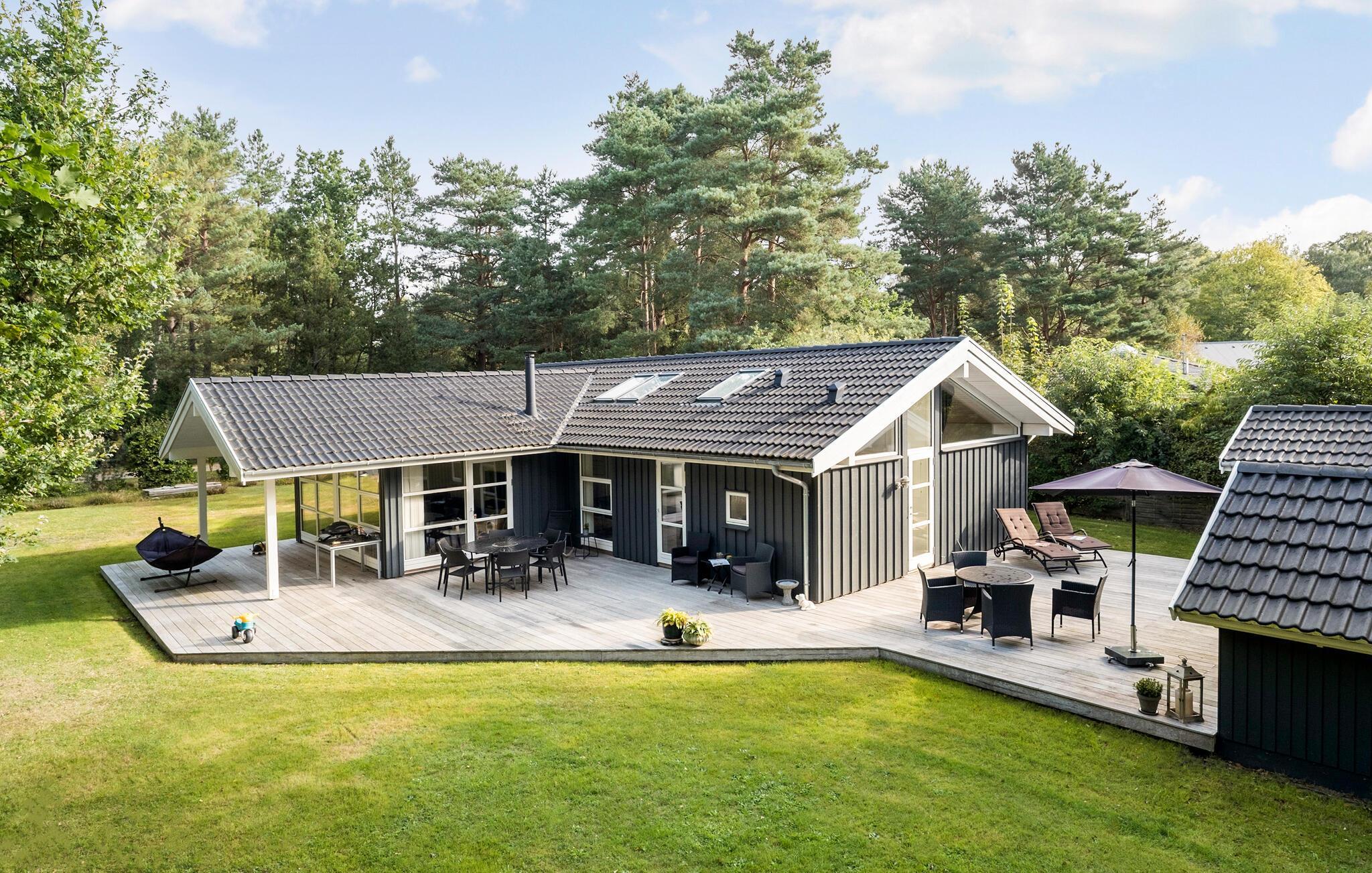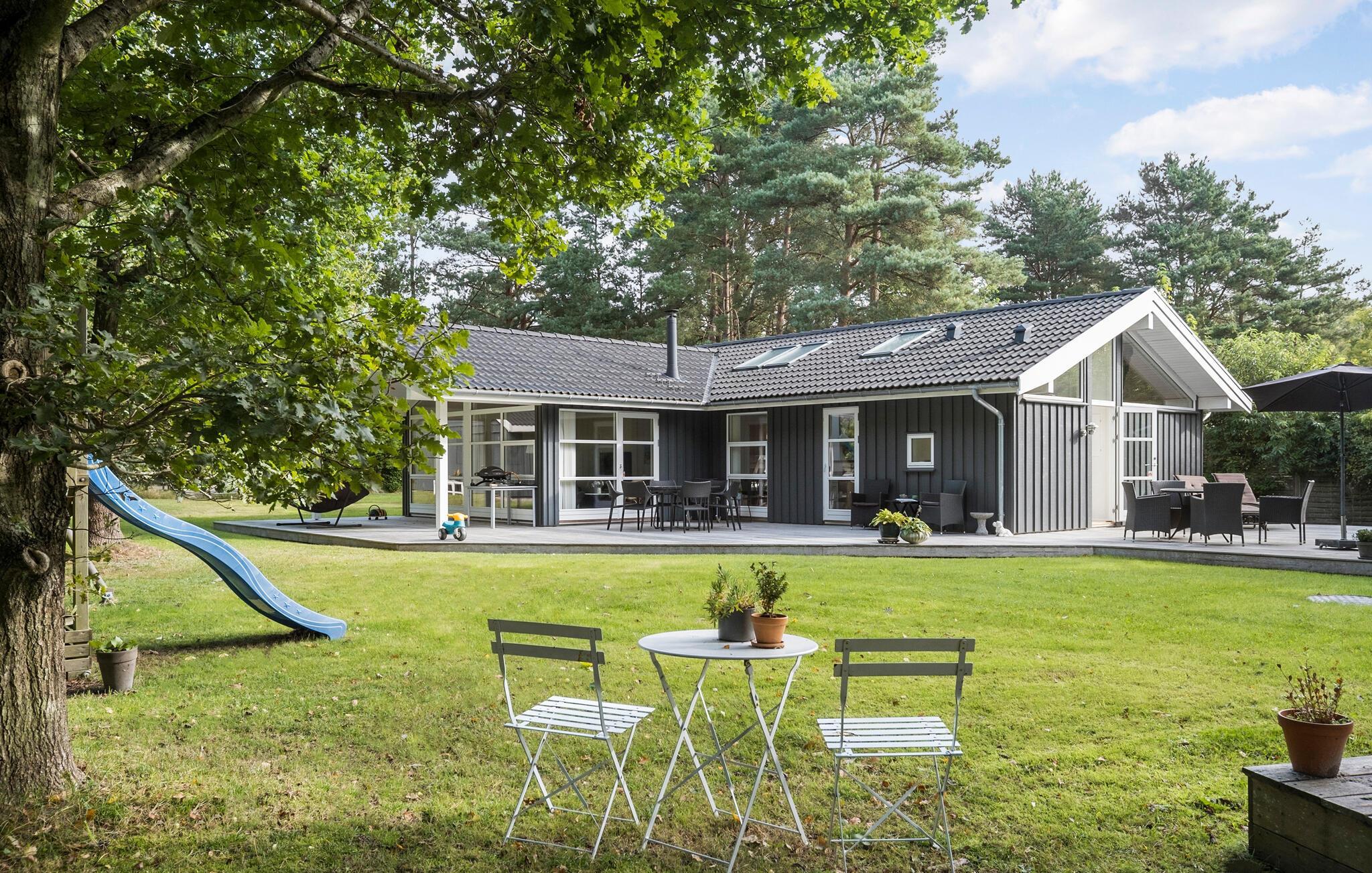 Huset er omkranset af en flot, velholdt træterrasse, der bliver jeres base om sommeren. Der venter mange dejlige timer med solbadning og hyggelige grillaftener, og børnene får masser af plads at spæne på med en bold mellem fødderne eller med legeredskaberne.
