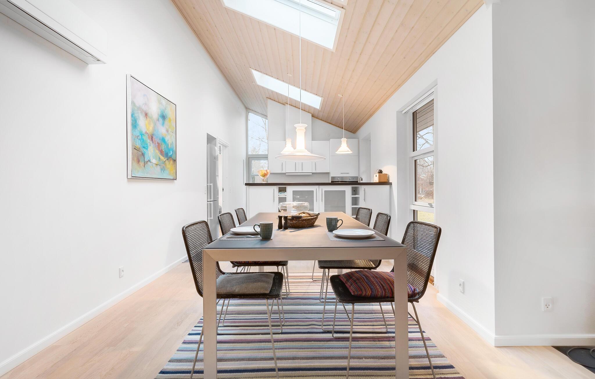 Der er lagt op til en herlig ferie med den udvidede familie eller måske en vennefamilie i dette dejlige hus i Østerlyng tæt ved Rørvig. Huset fremstår både flot, lyst og luftigt med højt til loftet og masser af naturligt lys gennem de store vinduespartier. Boligen er udstyret med mange moderne faciliteter, så I ikke kommer til at mangle noget. Efter en lækker aftensmad kan de voksne sludre eller spille brætspil, mens børnene boltrer sig i legestuen. Når de små er puttet, kan I lade en dejlig dag gå på hæld med lidt lækker wellness i boblebadet.