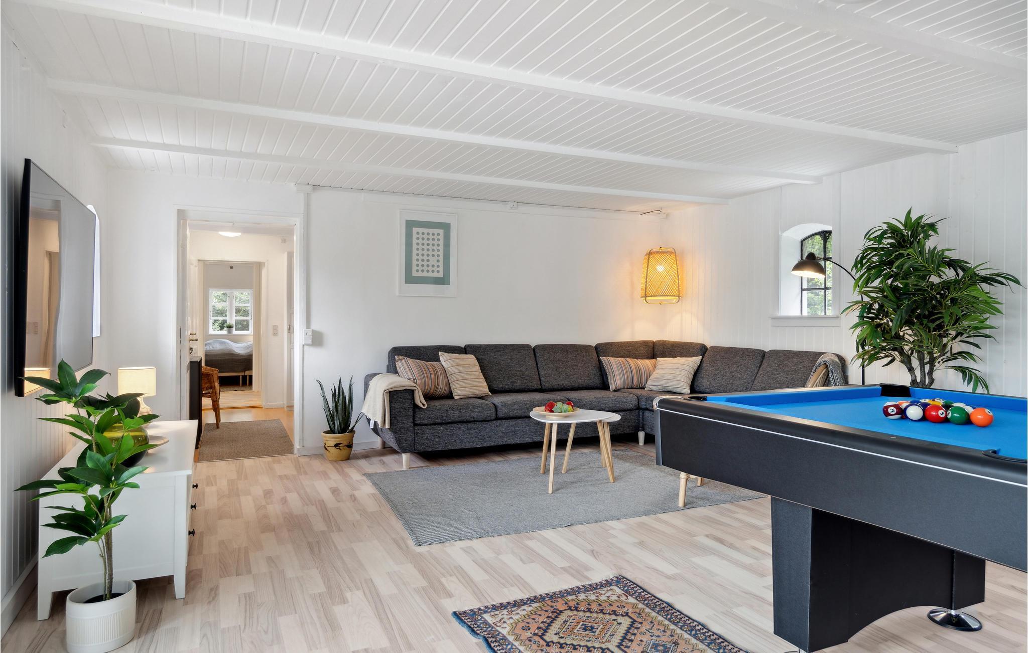 Dette rummelige hus i Østerlyng tilbyder sine gæster masser af plads til en vellykket ferie med en større gruppe. Værelserne er moderne og hjemligt indrettet og charmerer, takket være den hvide farve og de mange sprossevinduer, med en lys atmosfære, der på bedste vis leder tankerne hen på det helt særlige lys i maleriske Odsherred. Nyd den smukke udsigt over haven, mens I spiser ved det lange spisebord, brug tiden på at spille bordtennis, dart eller bordfodbold og nyd ferieaftenerne med fælles madlavning og en god film. Den meget store naturgrund lokker med et væld af udendørs aktiviteter. Mens de små graver lystigt, kan de større hoppe til svimlende højder på trampolinen eller spille fodbold. Saml hele flokken til et lækkert måltid fra grillen og slut aftenen af med et lejrbål eller selvforkælelse i det udendørs strandvandsspa.