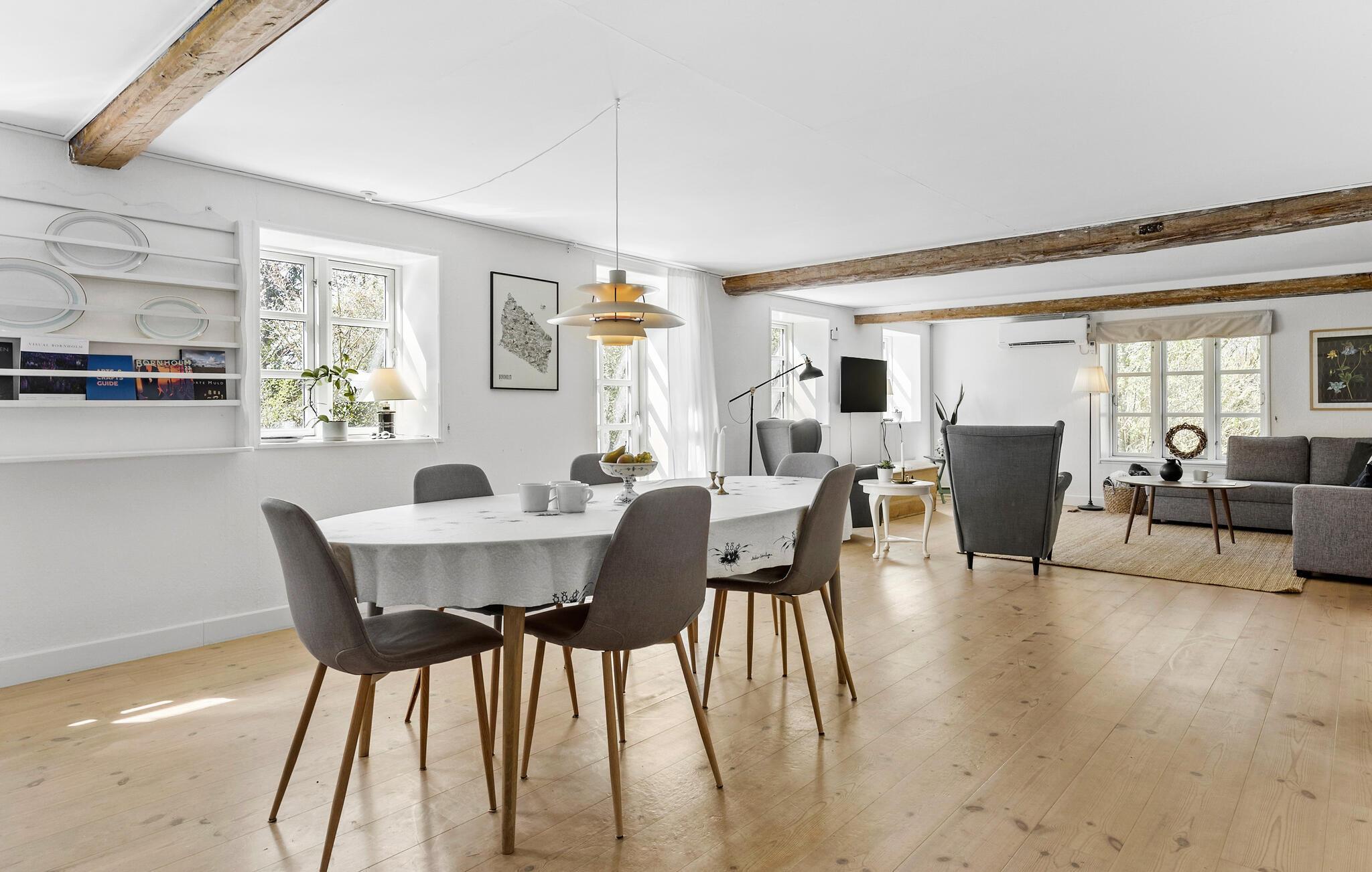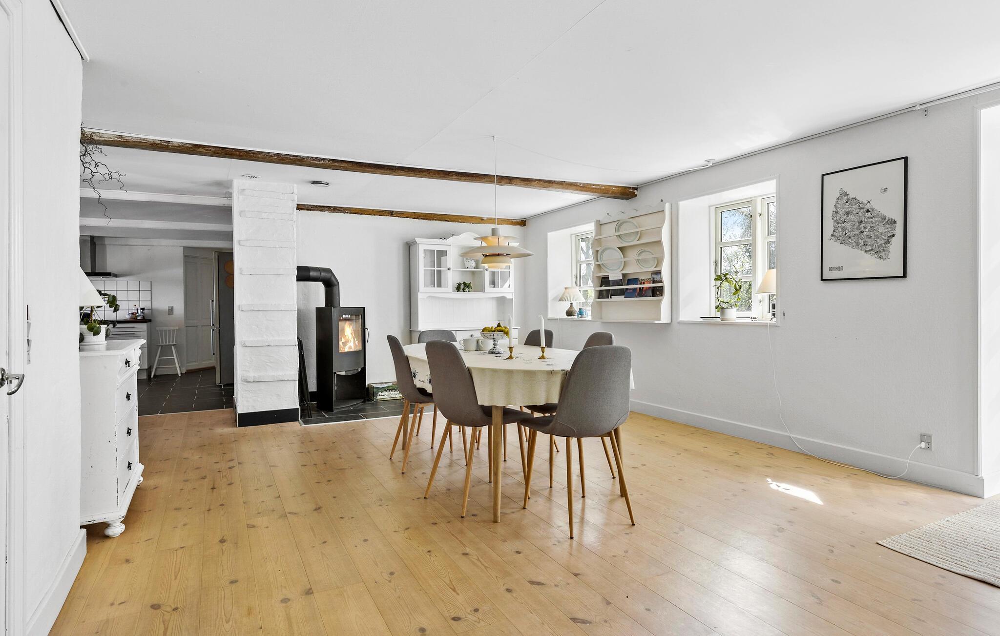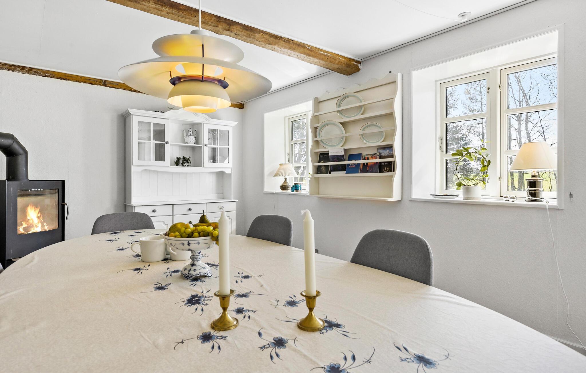 Tag den store familie under armen og rejs til Bornholm, hvor I lige uden for Østermarie får base i dette rummelige hus. Indretningen fremtræder flot og charmerende med solide loftsbjælker, velholdte trægulve og mange sprossede vinduespartier, der giver et lækkert lysindfald til den store, åbne stue. Køkkenet er rummeligt og veludstyret, så her kan familiens kokke tage sig god tid til madlavningen, mens andre læser en god bog eller dækker op ved spisebordet. Bider vejret lidt fra sig, er det bare at tænde op i brændeovnen, der giver varme og en hyggelig knitren til en dejlig aften med brætspil eller snacks og en god film i den komfortable sofa.