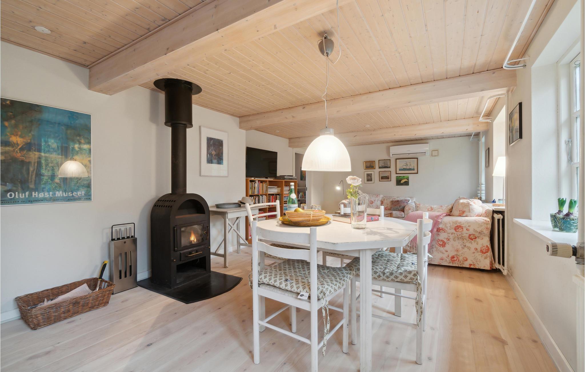 Velkommen til dette dejlige feriehus med historisk atmosfære. Det byder jer velkommen med en god planløsning og smagfulde rum med en lys indretning og lyse gulve og lofter. Her er nærmest helt hjemligt, og både store og små vil helt sikkert føle sig godt tilpas. Hobbykokke vil elske det store køkken-alrum, hvor der er masser af plads til at lave mad sammen. I er omgivet af natur, og i den grønne have kan I lege med jeres børn.