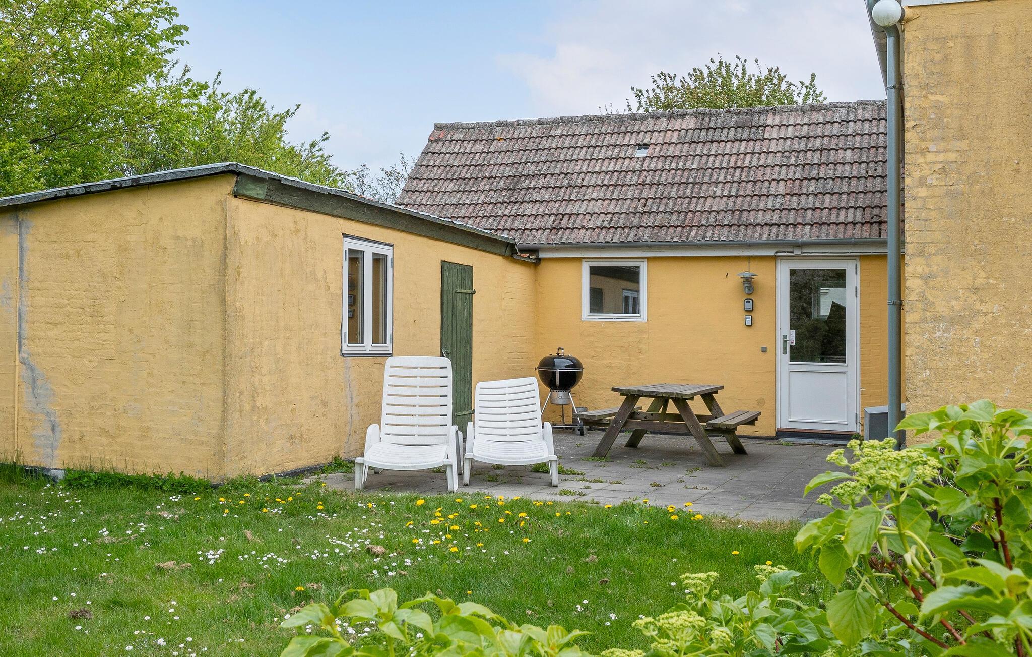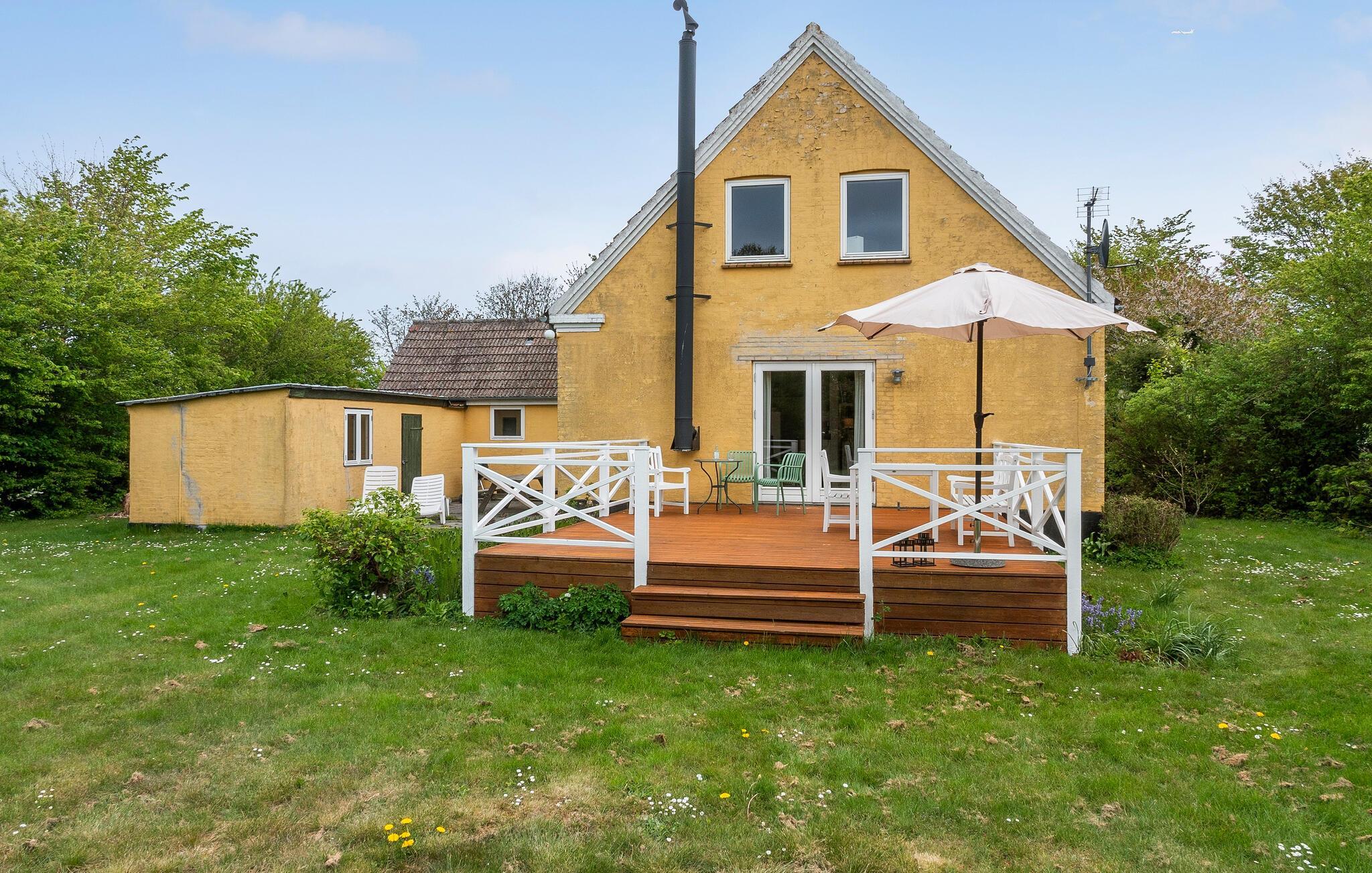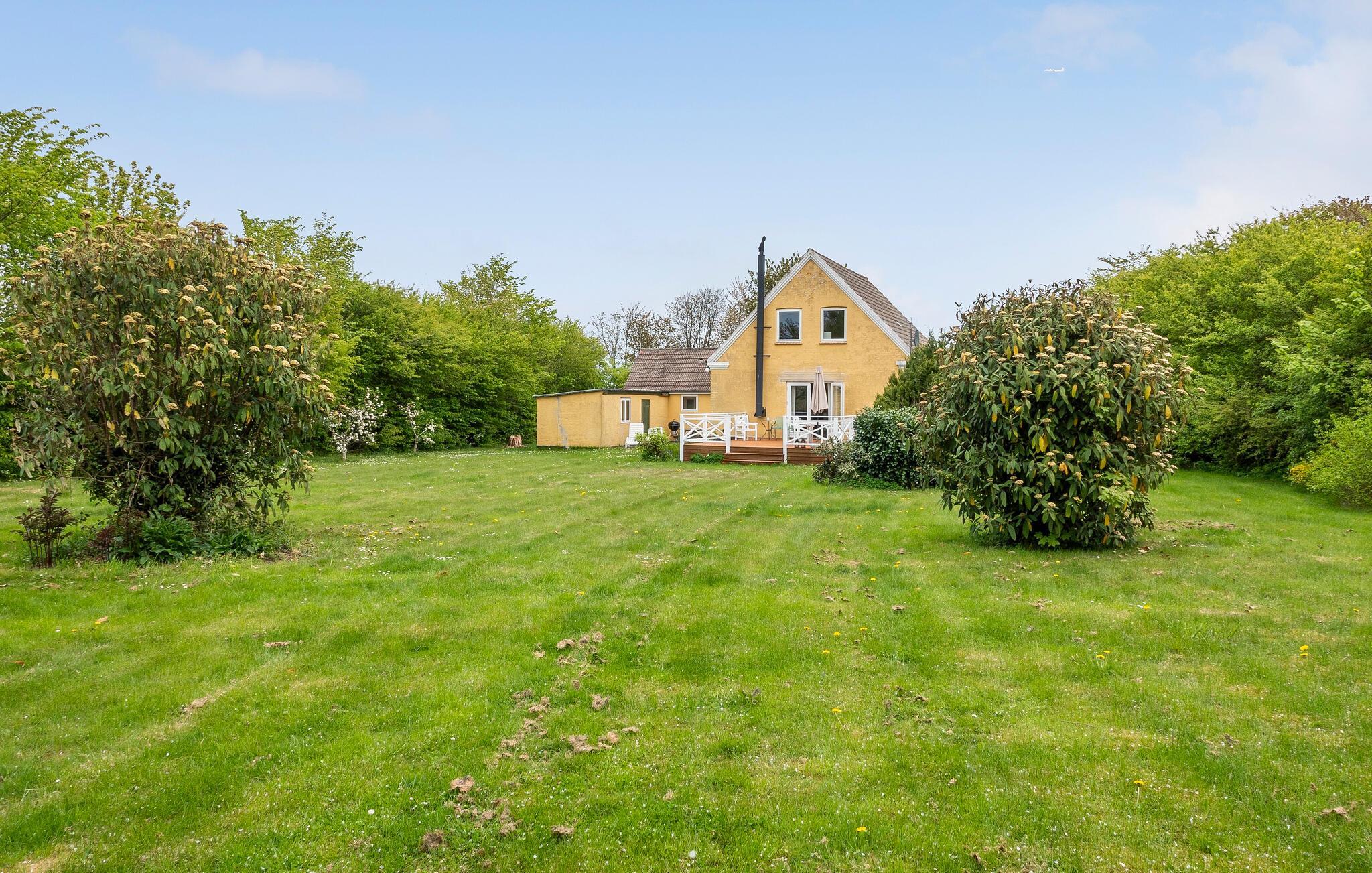 Udenfor inviterer den store ejendom hele familien til leg og hygge. Spil fodbold eller andre sjove spil på den rummelige græsplæne og server kaffe og kage på husets skønne terrasse om eftermiddagen.