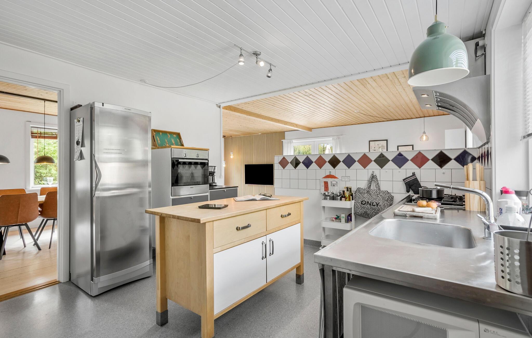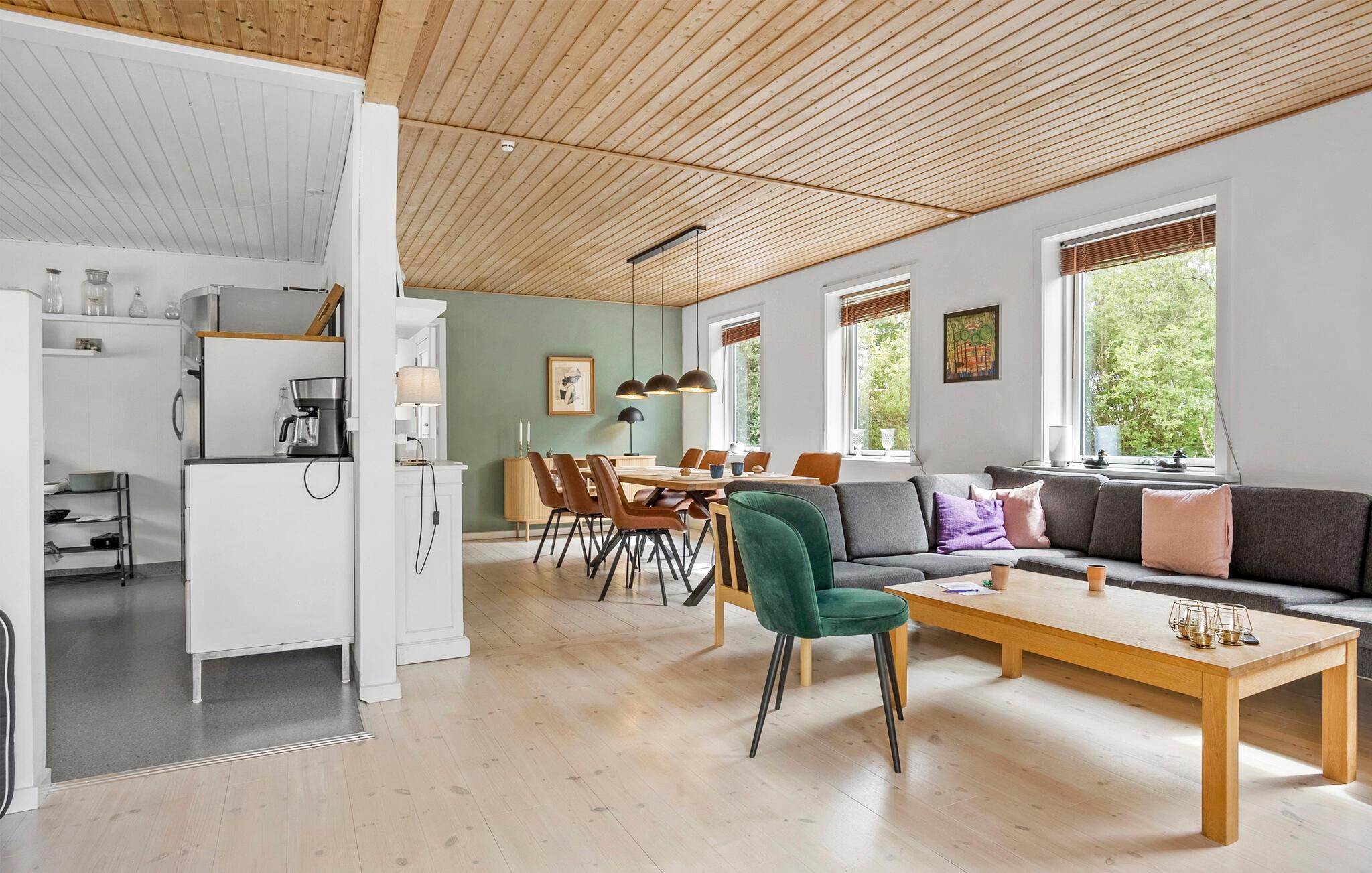 Dette rummelige feriehus, i den rolige landsby Østermarie, byder på et skønt tilflugtssted for en afslappende familieferie på Bornholm. Med masser af plads og komfortable møbler er den ideel til et afslappende ophold fyldt med nye opdagelser. begynd jeres dage med en solid morgenmad, som I kan tilberede i det rummelige, separate køkken og pakke et par snacks til jeres aktiviteter. Med en varm kop kaffe i det åbne spise- og opholdsområde kan I i fred og ro lægge jeres planer for dagen.