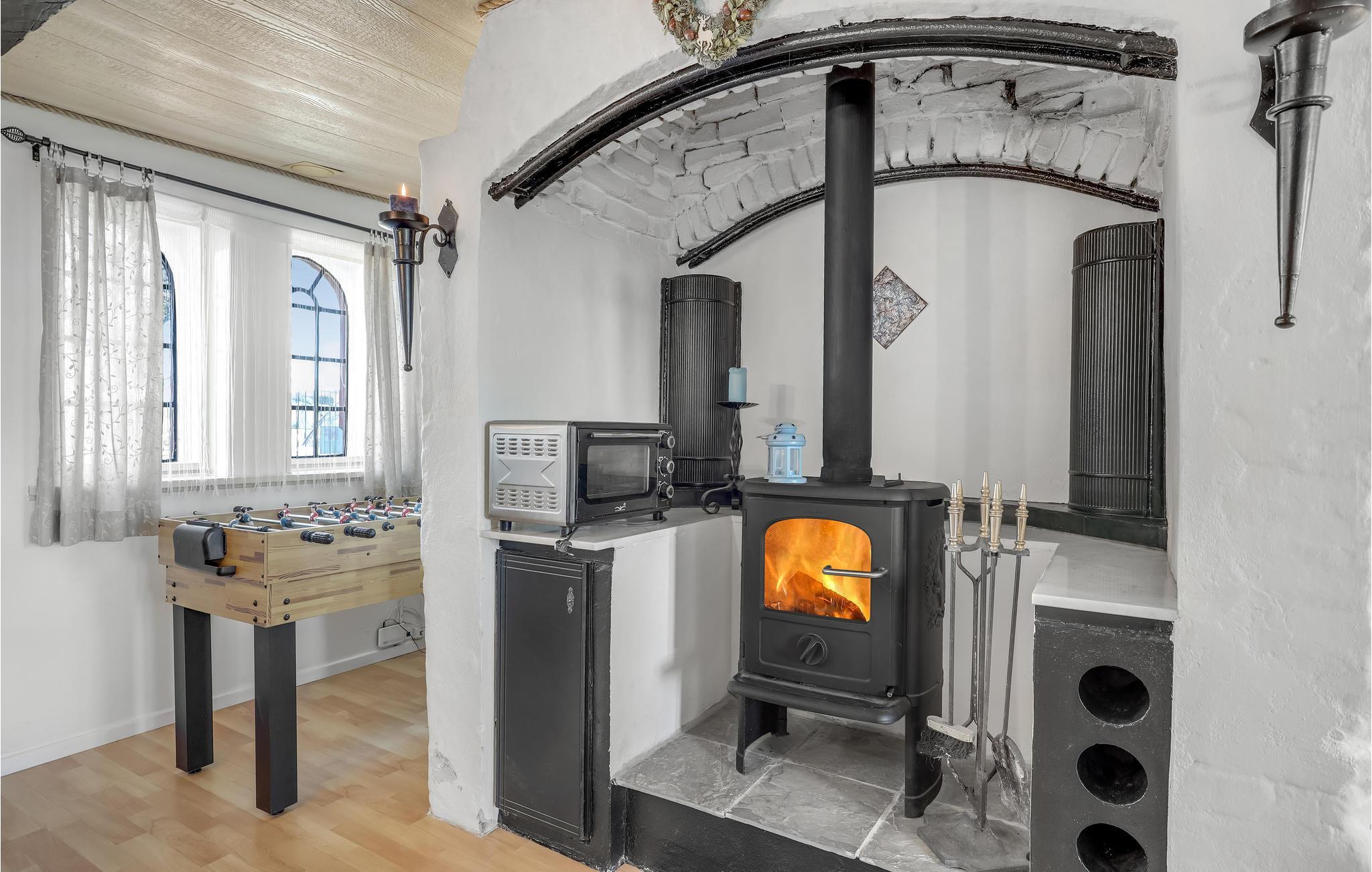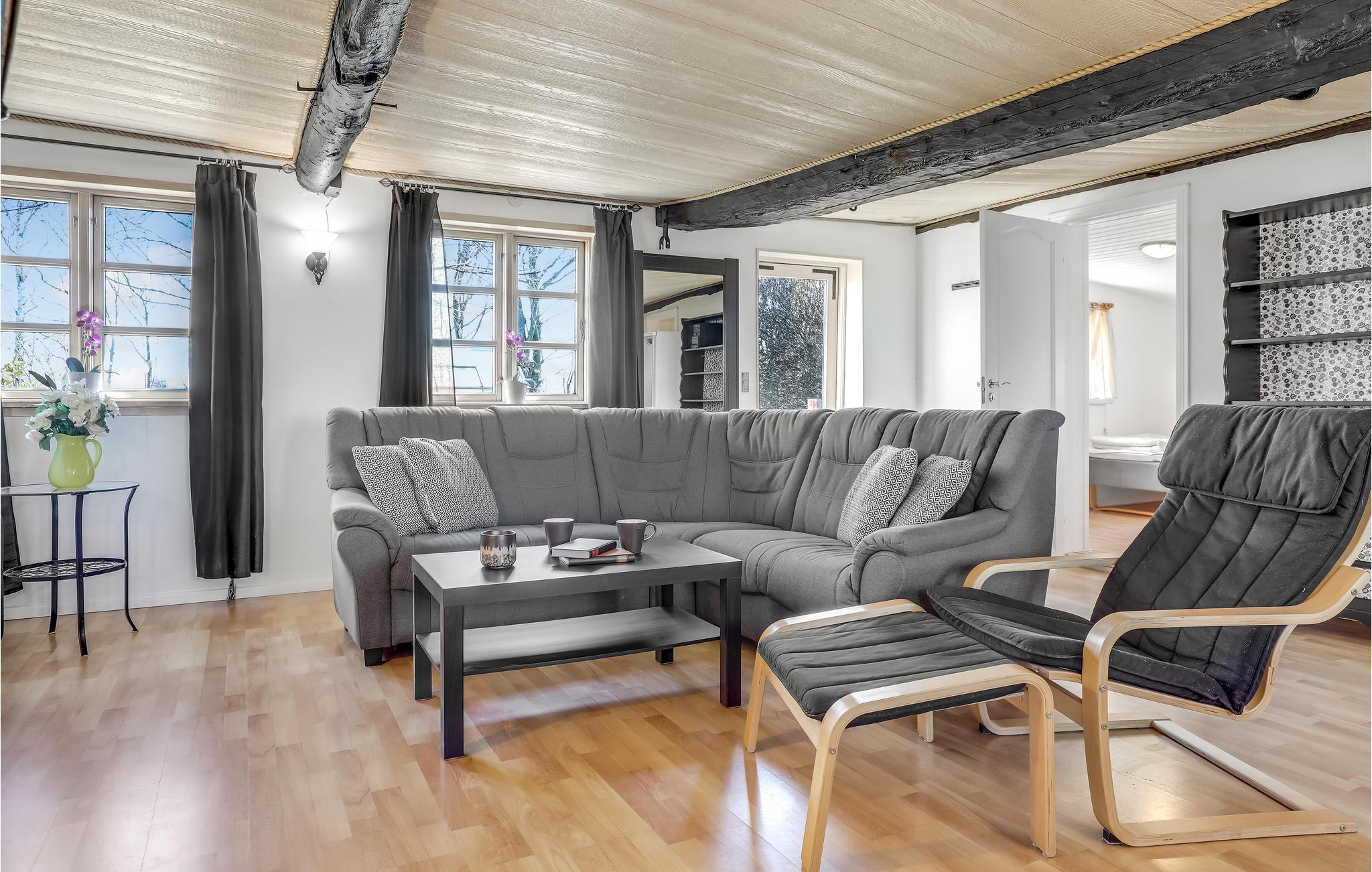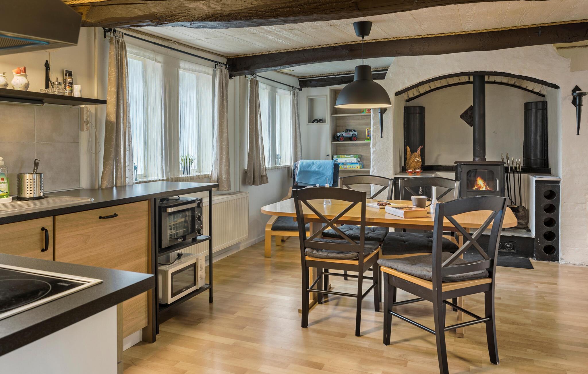 Pæn og velindrettet ferielejlighed i en ældre, men pænt vedligeholdt ejendom, som tidligere var en smedje, med separat terrasse og have til rådighed, og beliggende som nabo til husejer. Lejligheden er moderniseret i 2018 og fremtræder virkelig hyggelig og rustik med synlige bjælker og en dejlig kombineret spise- og opholdsstue med komfortable møbler og brændeovn. Endvidere to gode soveværelser og et flot, moderne badeværelse i lyse farver. Ejendommen ligger i landlige omgivelser med udsigt til marker. God terrasse med pæne havemøbler, hvor I kan nyde ferien i rolige omgivelser. Er l til landlig hygge og frisk luft, så er denne hyggelige ferielejlighed et godt valg, og der er ikke langt til kyst og indkøbsmuligheder og alle de andre flotte seværdigheder på øen.