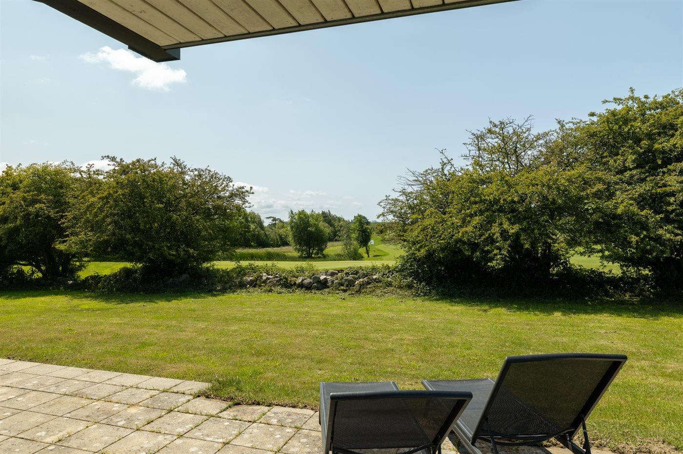 Fra huset og terrassen er der udsigt ud over området og Langelands Golfklubs 18-hullers golfbane. Er man golf-interesseret, så findes der næppe et sommerhus med en bedre beliggenhed!