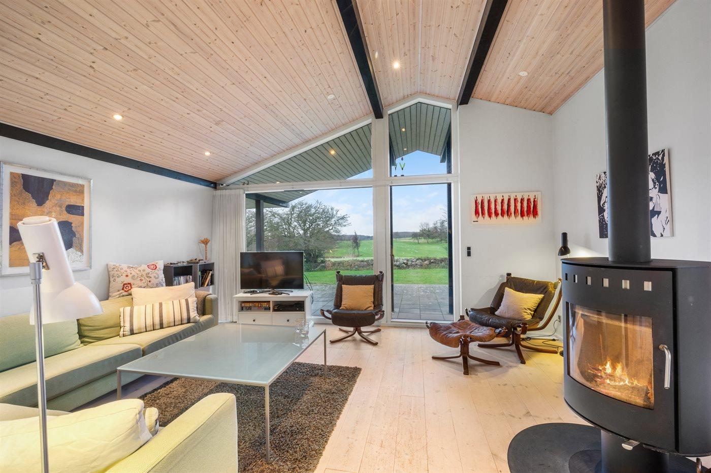 Arkitekttegnet sommerhus med fantastisk udsigt over Langelands golfbane og flere terrasser.