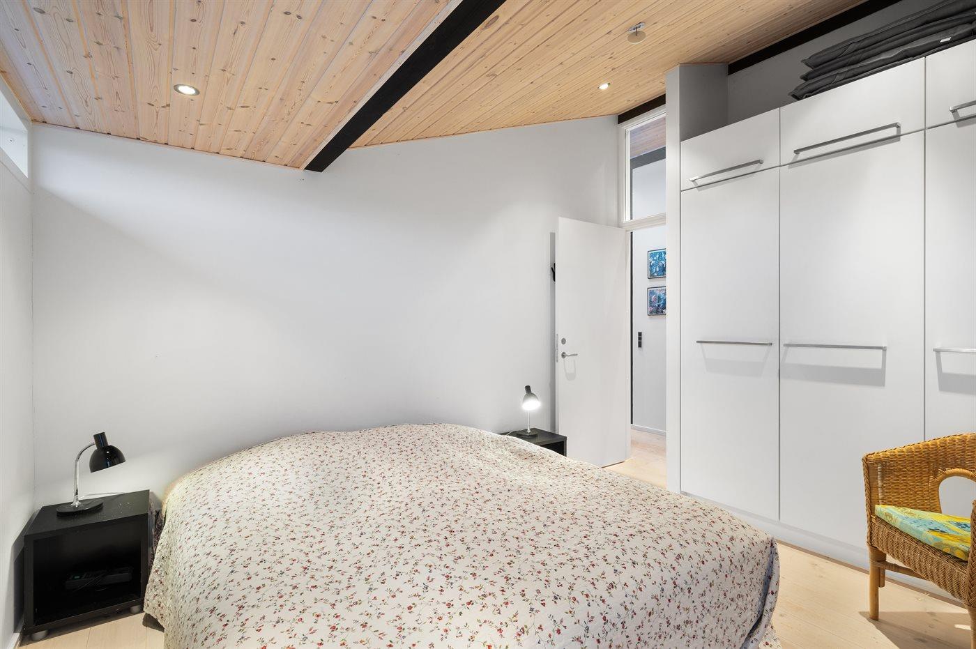 Der er i alt 3 soveværelser. Sovepladserne fordeler sig på: 4 sovepladser i dobbeltsenge. 2 sovepladser i sovesofa (dobbelt). 2 sovepladser på madrasser. 2 af disse sovepladser befinder sig på husets hems. Derudover er der 1 stk. barneseng.