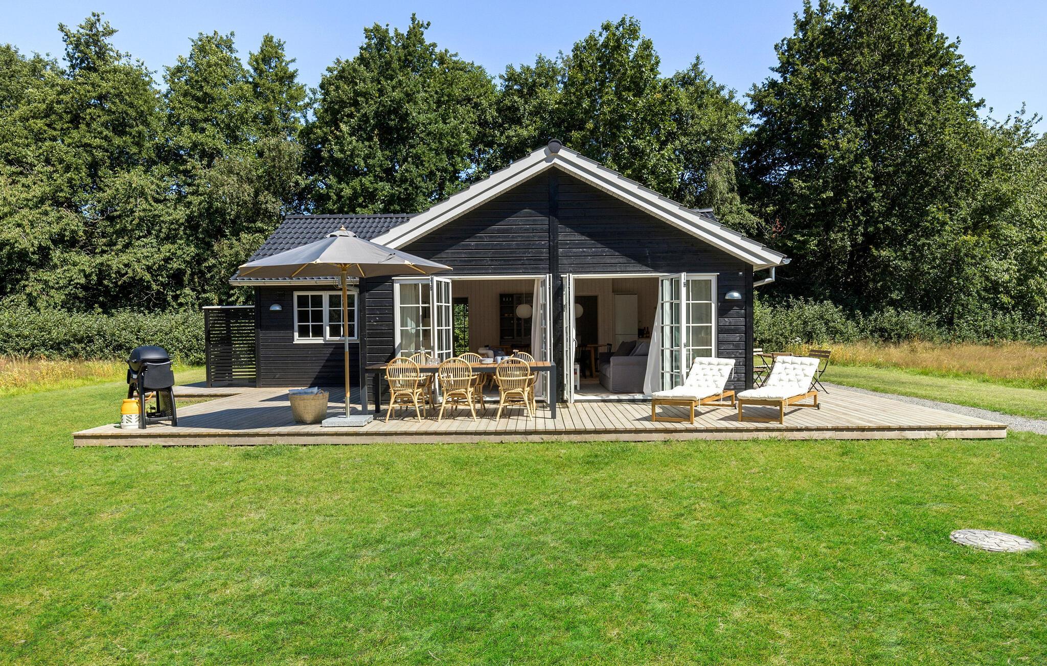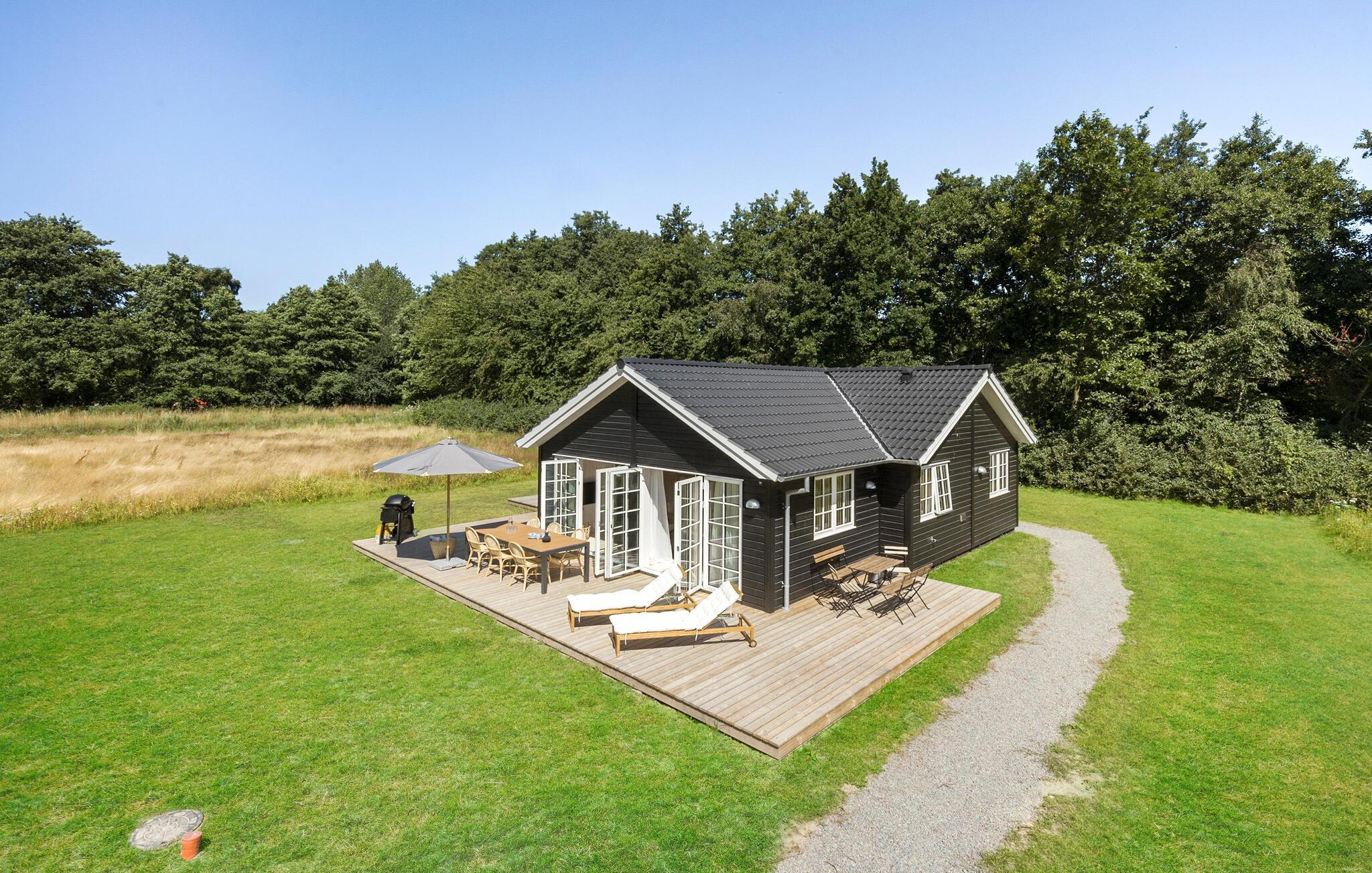 Udeområdet er tilsvarende lækkert. På den store grund er der en stor træterrasse med gode liggestole og havemøbler, hvor I kan lade jer bage godt igennem og nyde solen. Køl jer af under bruseren, når varmen er ved at få jer og lad børnene lege i haven, inden I tager på udflugt.