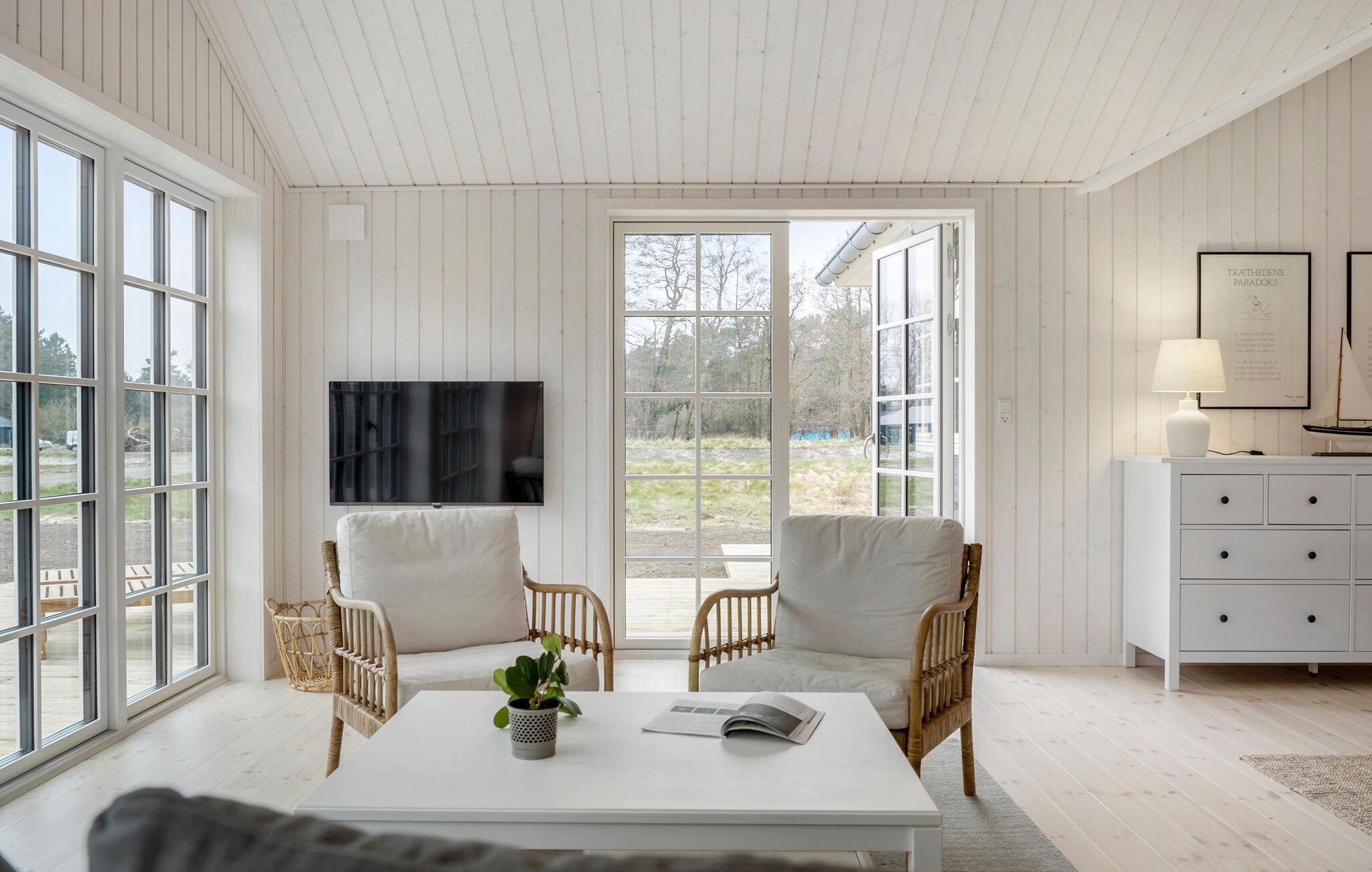 Komfortabelt feriehus på Bornholm med moderne indretning og stor terrasse tæt på børnevenlig strand.