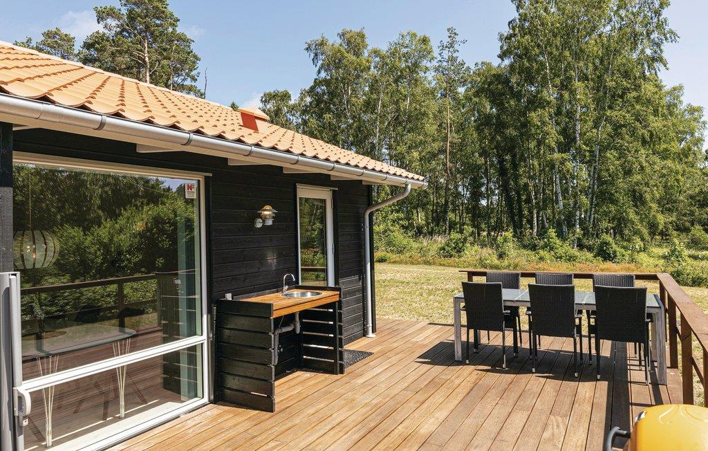 I dette feriehus med god komfort, beliggende i Sømarken nær Ålhammer Bugts skønne bølger, venter ren råhygge! Her kan I endelig koble af og tilbringe ægte kvalitetstid med dem, I holder af. Atmosfæren er moderne og lys takket være de fantastiske panoramavinduer, og kombinationen af lys og mørk tilføjer et varmt strejf. Lav puslespil eller spil brætspil med udsigt over de grønne omgivelser. Her er der hjemligt og rart at være, ikke kun indenfor, men også udenfor på den store træterrasse, der løber rundt om huset, og på den dejlige naturgrund. Terrassen indbyder til snacks, kølige drinks, solbadning og grillaftener. Gå en tur til stranden eller nyd en middag i særklasse på gourmetrestauranten, Kadeau Bornholm.