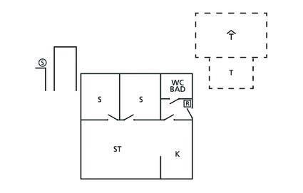 Badeværelse (nr. 1) - WC. Varmt og koldt vand. Bruser