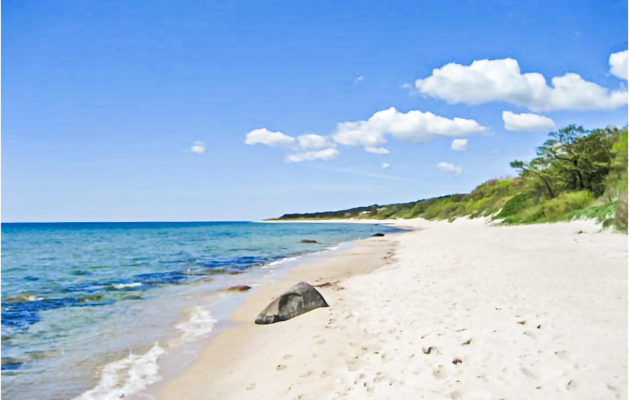 En kort gåtur fører jer til en dejlig sandstrand, hvilket gør sommerhuset ideelt som base til en strandferie. Men selvom I bor i et skønt sommerhus i et populært sommerhusområde med alt det nødvendige inden for kort rækkevidde, så kan det kraftigt anbefales at tage rundt på øen med bil eller cykler og opleve nogle af hovedattraktionerne som Hammershus, Dueodde Strand, Østerlars rundkirke, Ekkodalen eller Helligdomsklipperne, samt nogle af dens ekstremt charmerende byer såsom Aakirkeby, Snogebæk og Svaneke.