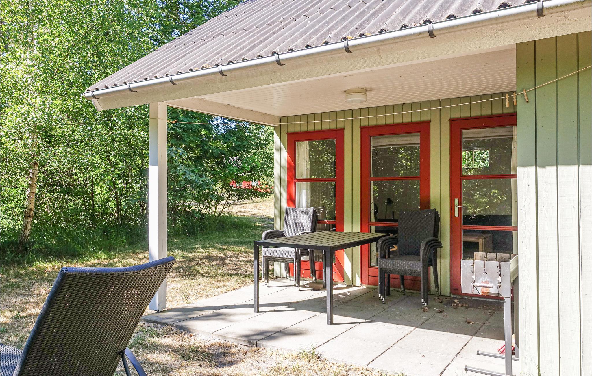 Charmerende sommerhus tæt på børnevenlig strand med overdækket terrasse og grill i rolige naturomgivelser.