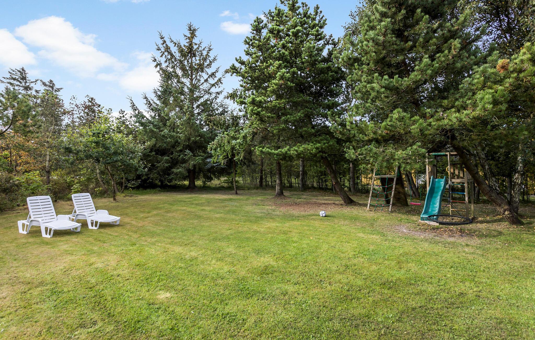 Træder I ud på terrassen, vil få et godt overblik over den store have, som har både gynge, rutchebane og liggestole. På terrassen kan I tænde op i grillen og forberede et lækkert måltid under åben himmel.