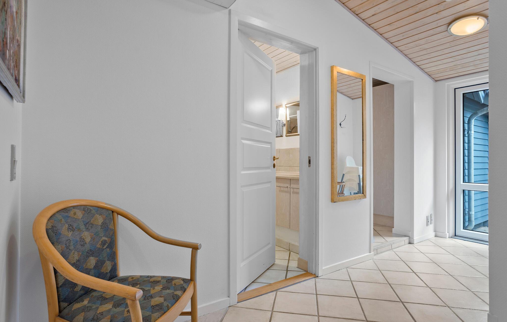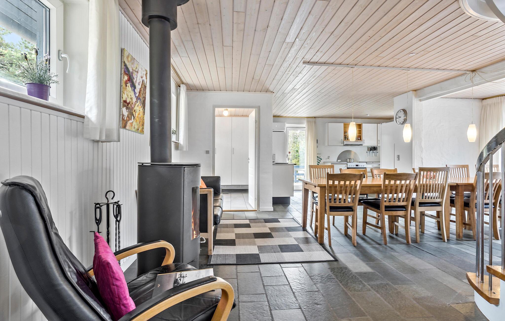 Velkommen til dette hyggelige sommerhus, som er den ideelle base for jeres næste familieferie. Huset giver plads til afslapning og sjove aktiviteter. I alrummet kan I både lave mad i køkkenet, slappe af i loungeområdet ved brændeovnen eller spille brætspil ved spisebordet. Ligeledes kan I svinge benene op og slappe af i sofaerne ovenpå, hvor I også har mulighed for at tænde op i pejsen. I forlængelse af huset er en indendørs pool, hvor børnene kan lege, mens I slapper af i spabadet ved siden af. Efterfølgende kan slutte af med en tur i saunaen.