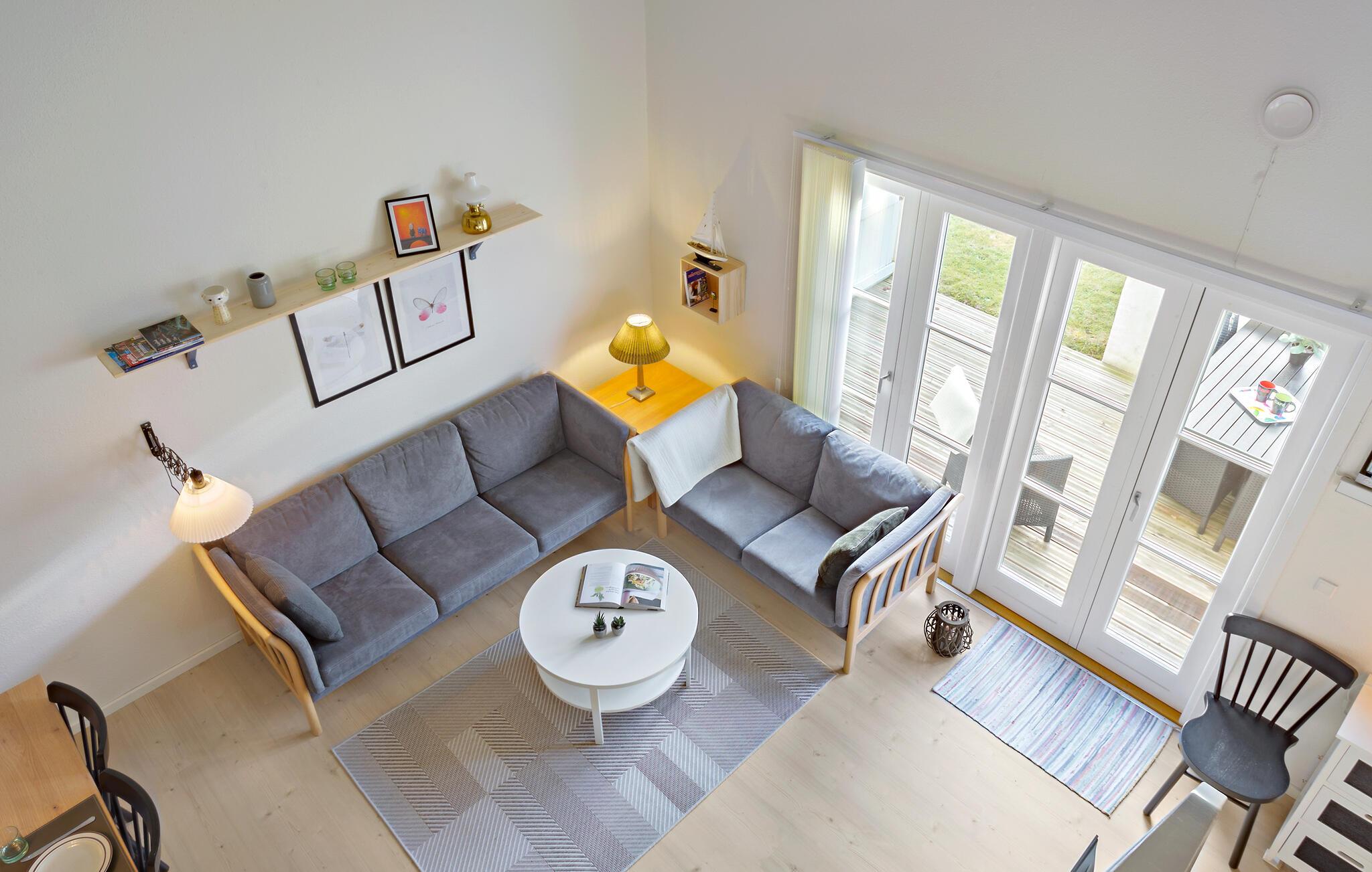 Denne lejlighed er den perfekte base for nogle herlige dage med dem, I holder af, og der er lagt op til en ferie med masser af afslapning og aktiviteter. Boligen fremstår flot og velholdt med en moderne indretning, der lyses dejligt op udefra gennem vinduerne og glasdørene ud til terrassen. Køkkenet er veludstyret, så tag jer blot god tid til at kræse om familiens livretter, mens andre hygger sig med en god bog i stuen eller med puslespil ved spisebordet. Tag måltiderne med udenfor og nyd den friske luft og dejlige udsigt, inden I lader en skøn feriedag gå på hæld med brætspil eller en god film i stuen.