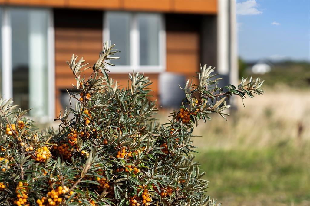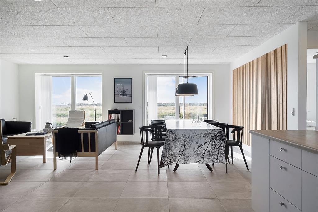 Udenfor venter en dejlig, åben naturgrund, som indbyder til både ro og fordybelse. Den store terrasse er det oplagte sted at starte dagen med morgenkaffen i hånden og udsigt til den fredelige natur, der omgiver huset. Her er rigeligt med plads til at slænge sig i liggestolen, nyde solen eller samle hele flokken til hyggelige grillaftener under åben himmel. Børnene kan frit løbe rundt og udforske omgivelserne, mens de voksne nyder en stille stund med vinden i håret og den særlige feriero, der kun findes, når man er tæt på både hav og fjord. Også herude fornemmer man husets kvalitet og gennemtænkte detaljer, hvor alt fungerer og giver plads til ferie i eget tempo.