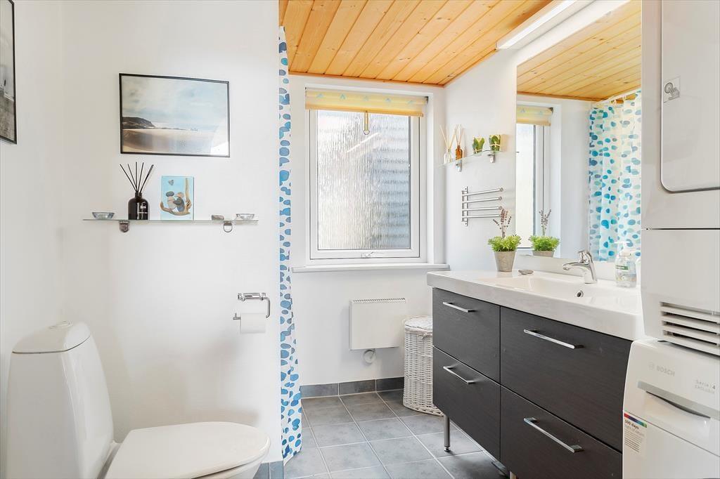 Når du træder ind i sommerhuset, bliver du mødt af en lys og venlig indretning, der skaber en følelse af hjemlig hygge. Stuen er indrettet med komfortable møbler, hvor du kan slappe af efter en dag ved havet. På kølige aftener sørger brændeovnen for en skøn, knitrende varme, der indbyder til afslappede stunder med en god bog eller et spil kort. Køkkenet er åbent og funktionelt, så I let kan samles om madlavningen og nyde et godt måltid sammen ved spisebordet. Hele huset er velholdt og pænt indrettet, hvilket gør det til en dejlig ramme om jeres ferie.