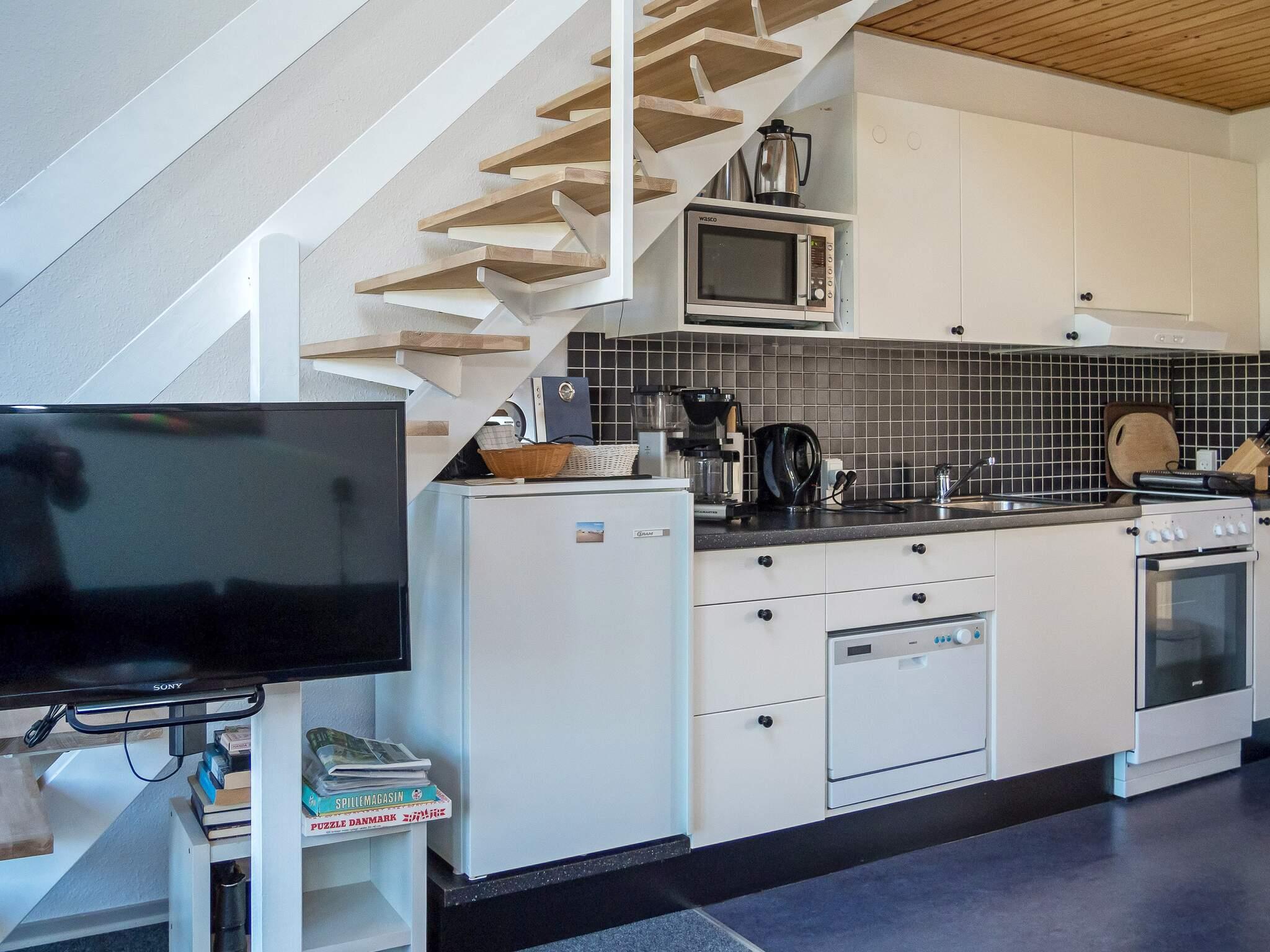 Køkken: El-komfur, køleskab m/frostboks, mikroovn, kaffemaskine, opvaskemask.