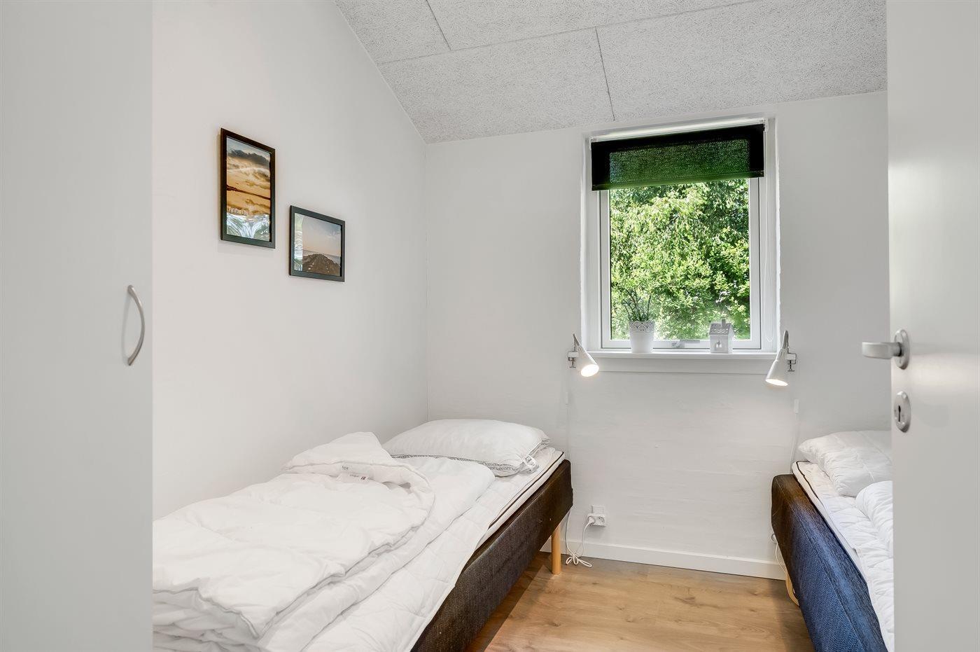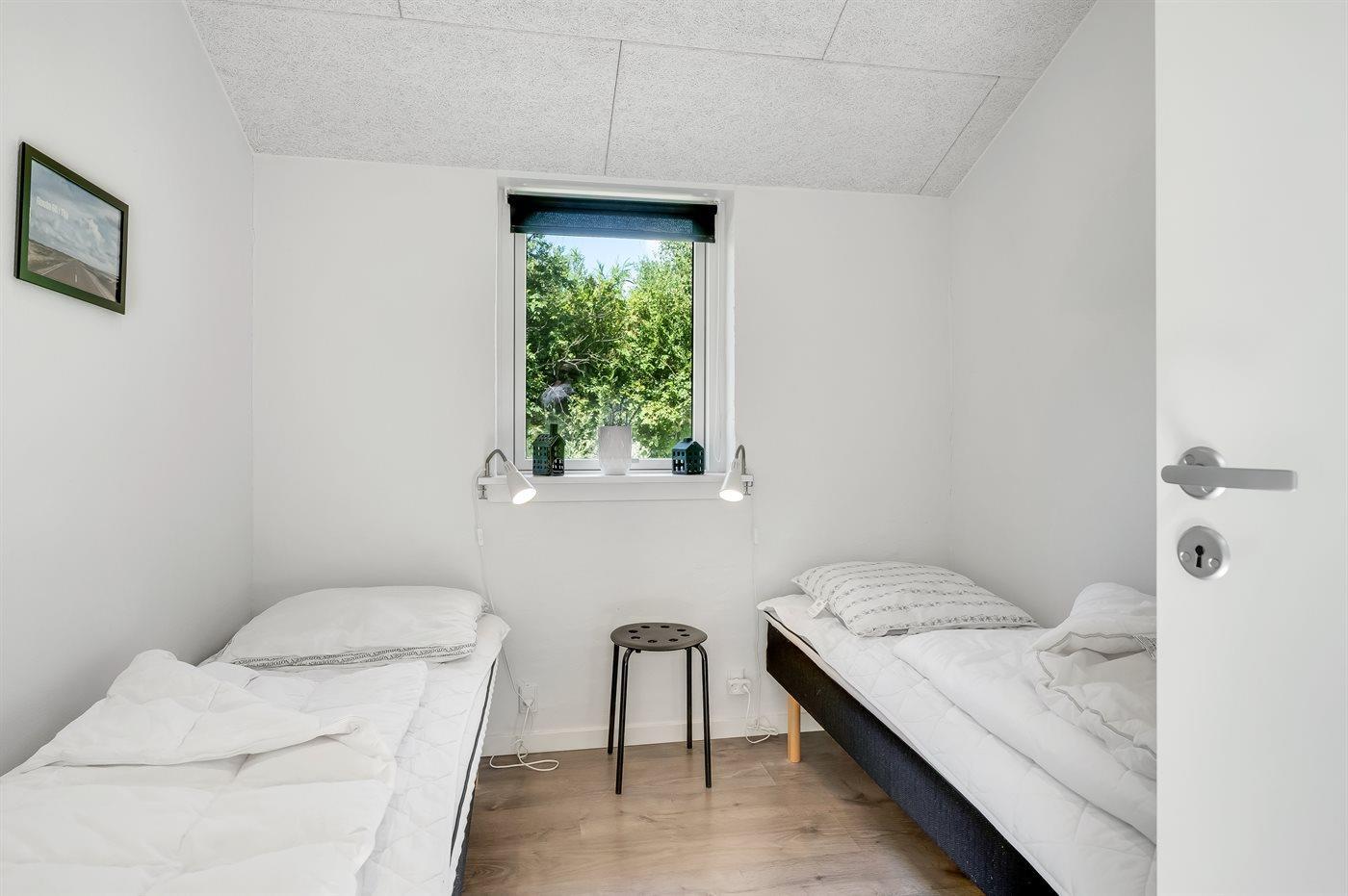 Der er i alt 5 soveværelser. Sovepladserne fordeler sig på: 4 sovepladser i dobbeltsenge. 6 sovepladser i enkeltsenge. Derudover er der 1 stk. barneseng.