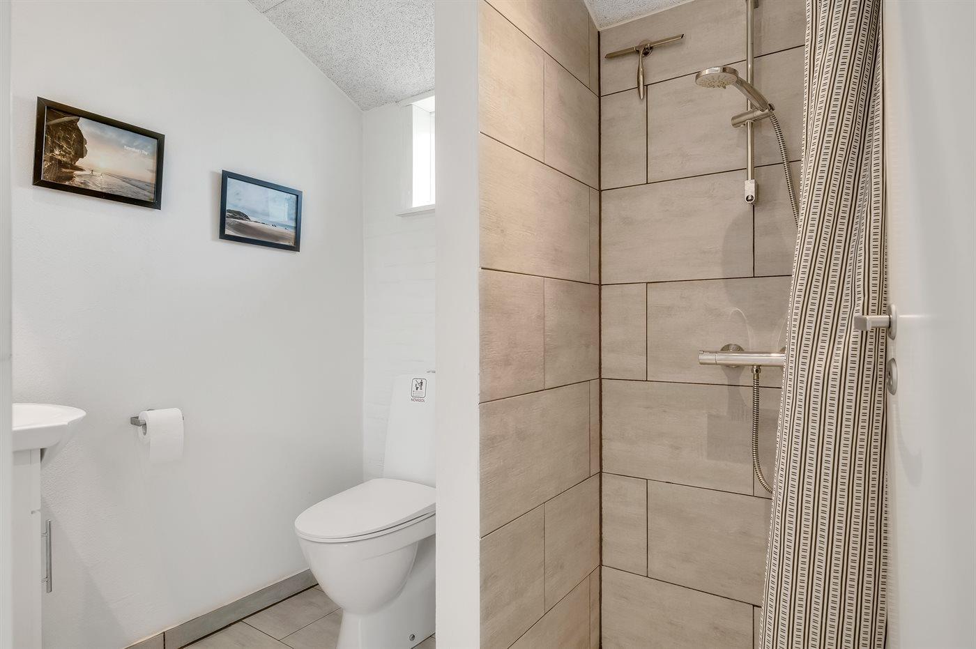 Der er 2 badeværelser med bruseniche og 2 toiletter. Der er gulvvarme på 2 badeværelser.
