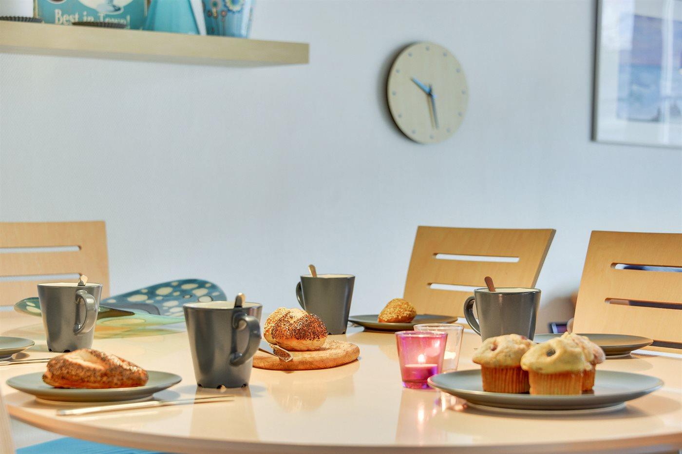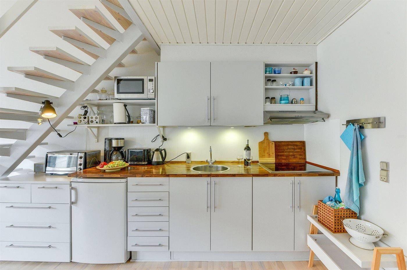 Køkkenet er udstyret med 1 køleskab. Der er 4 keramiske kogeplader, miniovn, mikrobølgeovn samt opvaskemaskine.