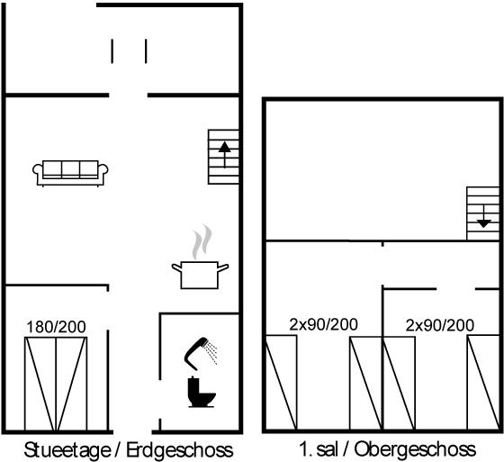 Der er i alt 3 soveværelser. Sovepladserne fordeler sig på: 2 sovepladser i dobbeltseng. 4 sovepladser i enkeltsenge.