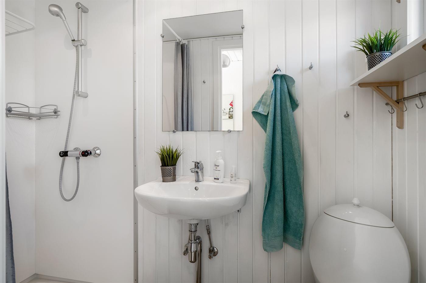 Der er 1 badeværelse med bruseniche og 1 toilet.