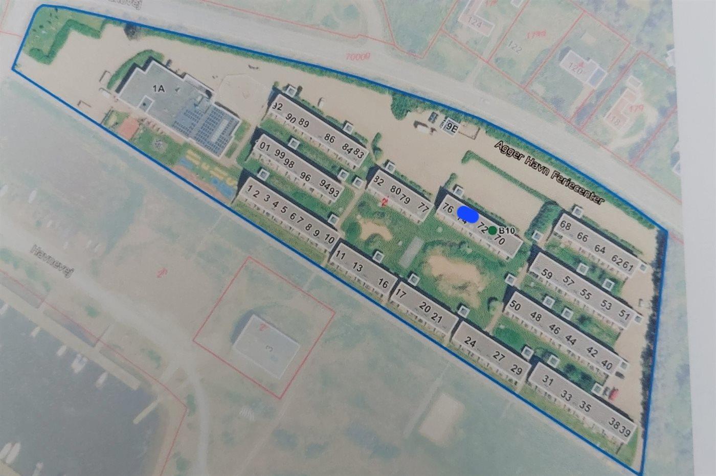 Denne lejlighed er en del af Agger Havn Feriecenter, som består af 101 ferieboliger. Ferieboligen er i 2 plan og til hver bolig hører en delvis afskærmet terrasse med havemøbler. I feriecentret ligger restaurant Agger Darling. Der er åben dagligt henover sommeren. Der afholdes jævnligt hen over året koncerter med kendte kunstnere. Af gratis fællesfacilliter findes indendørs swimmingpool, sauna, bordtennis, billard, beachvolley, minigolf, petanquebaner, boldbane og stor legeplads med bl.a. gynge og sandkasse. Desuden møntvaskeri med vaskemaskiner og tørretumblere på stedet. I feriecentret er der opsat 4 ladestandere (11 kW) til elbiler.