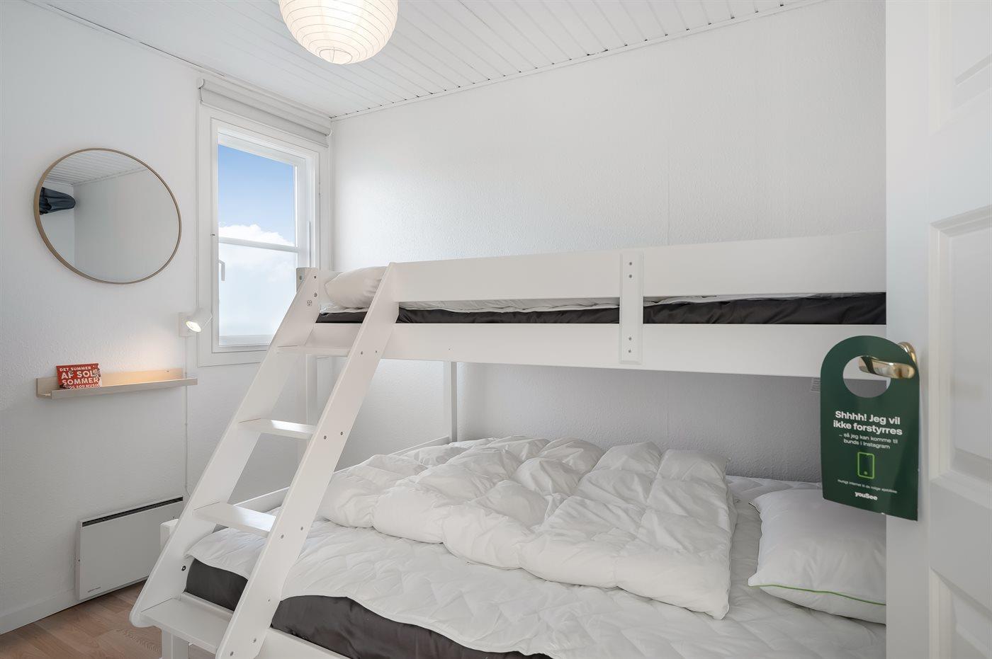 Der er i alt 3 soveværelser. Sovepladserne fordeler sig på: 6 sovepladser i dobbeltsenge.1 soveplads i køjeseng.