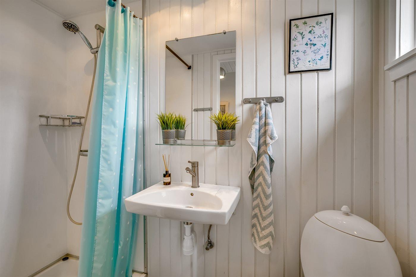 Der er 1 badeværelse med bruseniche og 1 toilet.