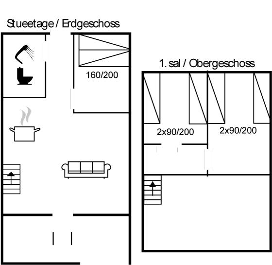 Der er i alt 3 soveværelser. Sovepladserne fordeler sig på: 2 sovepladser i dobbeltseng. 4 sovepladser i enkeltsenge.