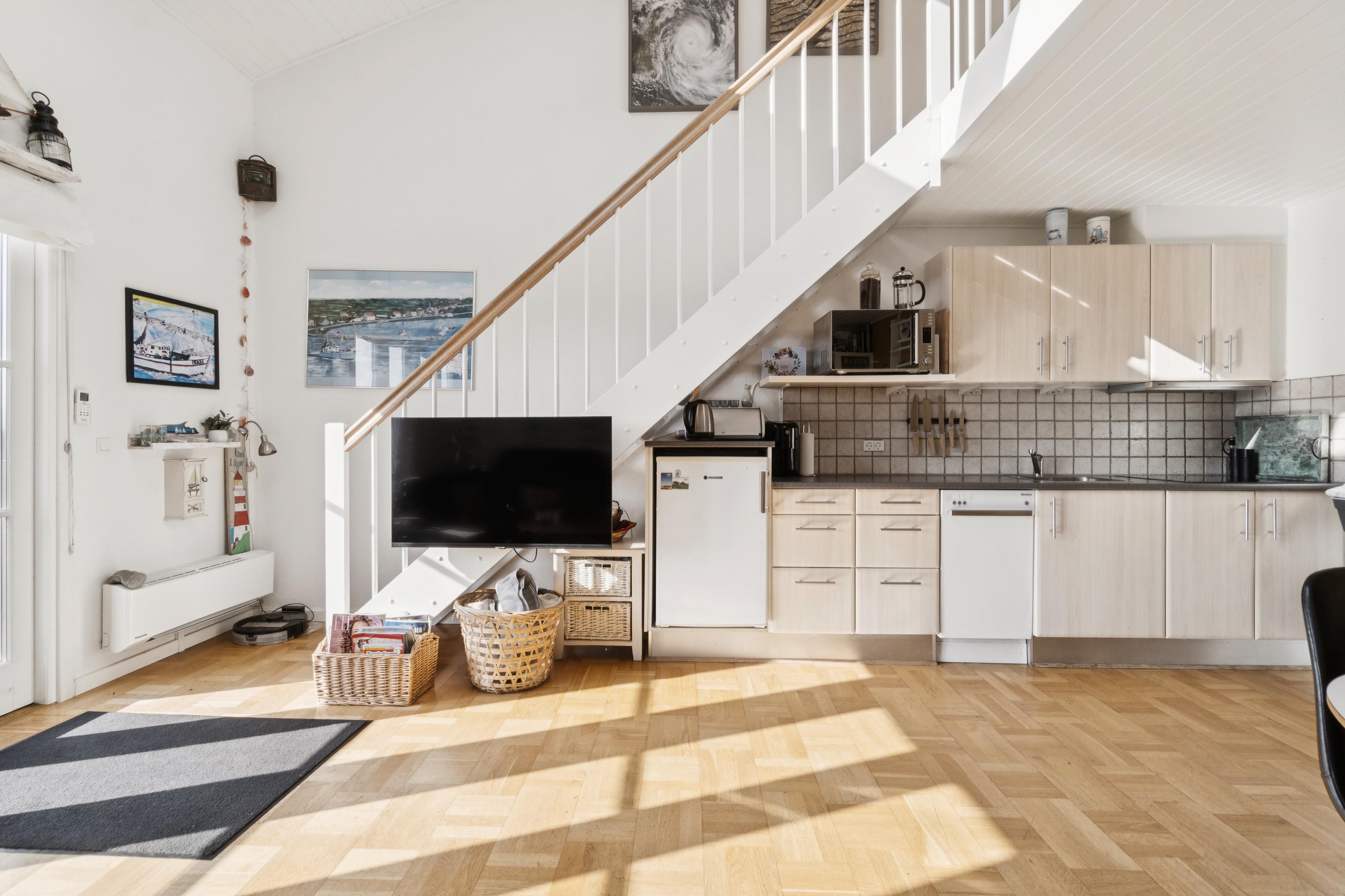 Praktiske faciliteter som trådløst internet, kabel-tv, dansk TV og tysk TV gør opholdet komfortabelt for både børn og voksne. Der er også en energibesparende varmepumpe, der også kan fungere som aircondition, hvilket sikrer et behageligt indeklima året rundt. Denne ferielejlighed passer perfekt til jer, der drømmer om en ferie tæt på vandet med gode faciliteter, smuk udsigt og plads til at være sammen.