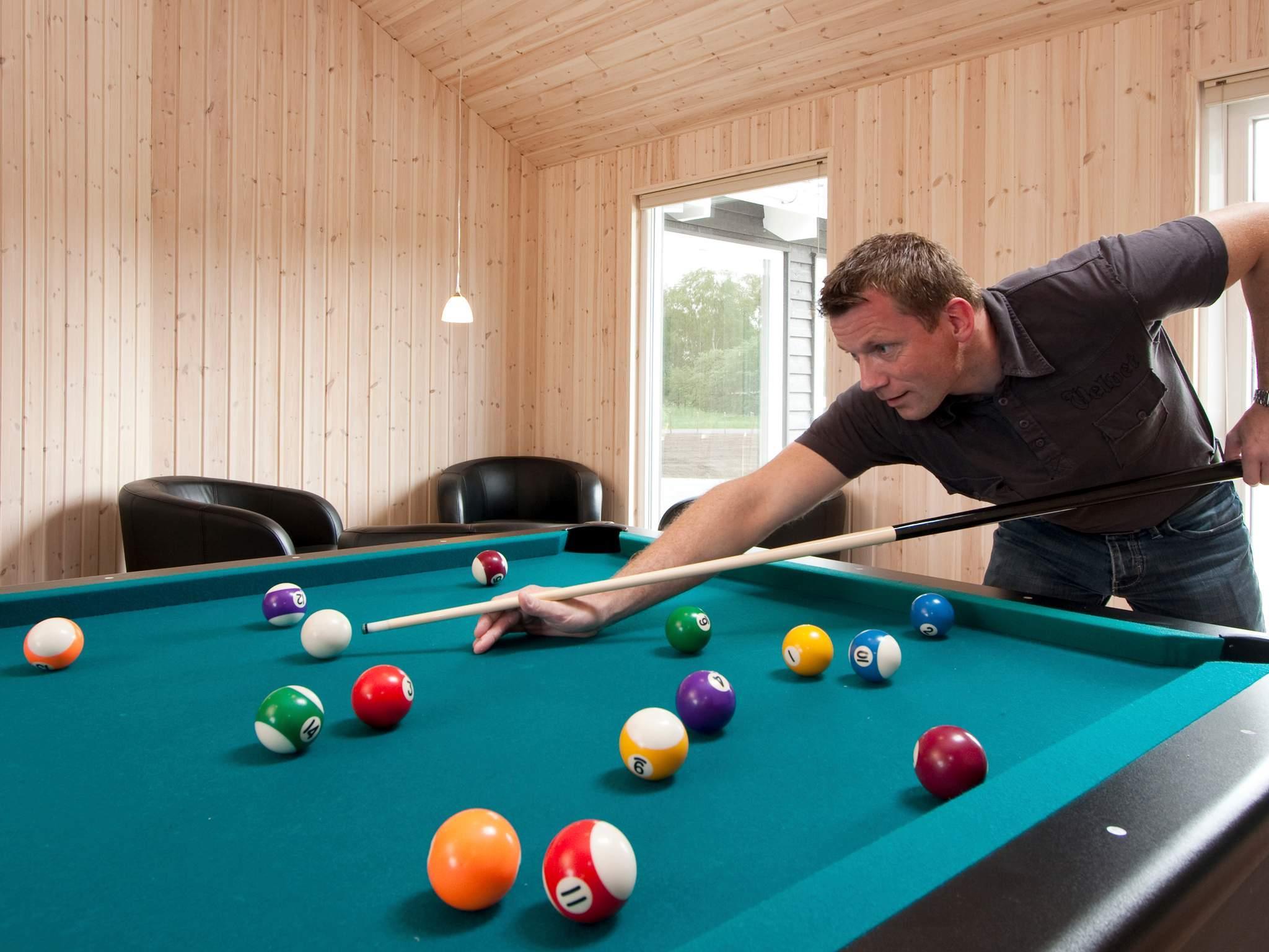 Velindrettet sommerhus ved Ahl Strand med swimmingpool og aktivitetsrum der ganske enkelt rummer alt, hvad hjertet kan begære af aktivitets-og udfoldelsesmuligheder. Husets poolafdeling indeholder både stor swimmingpool, vandrutschebane, stor indbygget spabad og sauna med plads til 4-6 personer. I aktivitetsrummet hvor der er bar med musikanlæg, kan I tage et spil dart, billard eller pool ved poolbordet, spille bordtennis eller bordfodbold. Der er PlayStation 2 og 4 (uden spil).