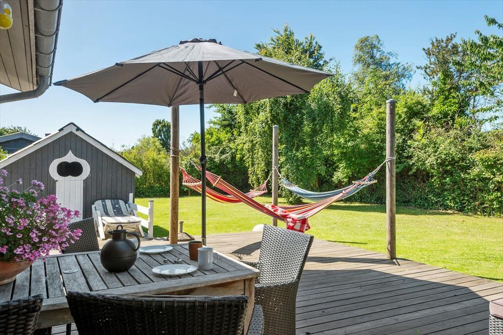 Terrassen skaber en naturlig forlængelse af ferielivet. Her kan du begynde dagen i den friske havluft, nyde en frokost i solen eller samle dagen op mens horisonten farves af aftensolens varme toner. Stranden ligger kun en kort gåtur væk og giver dig både muligheder for aktivitet og pauser. En tur langs vandkanten, et øjebliks stilhed ved bølgerne eller en eftermiddag med tid til at mærke naturens rytme. Alt omkring dig lægger op til nærvær, fællesskab og ro, præcis som en ferie ved kysten skal være.