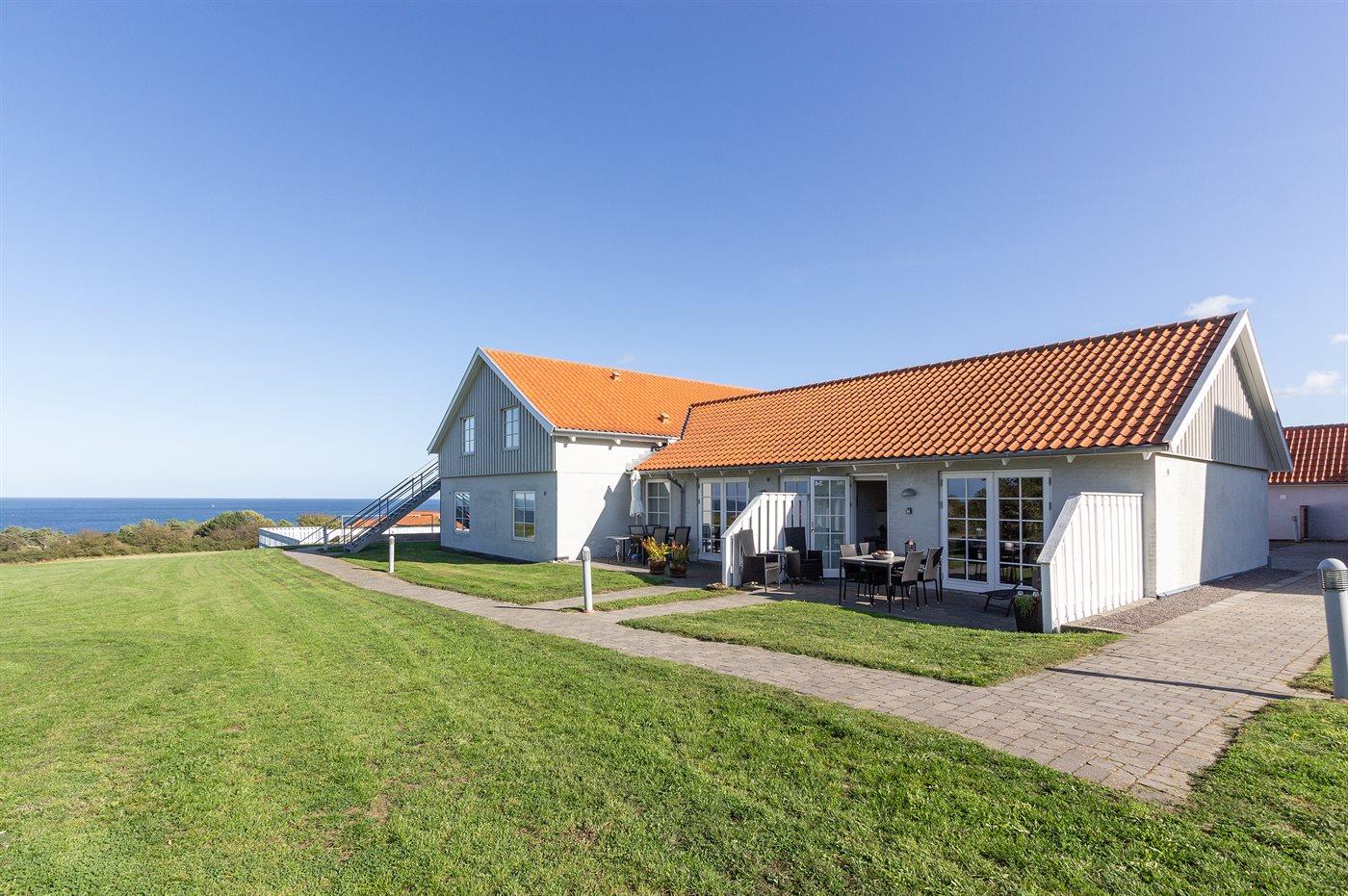 Denne pænt indrettede og lyse ferielejlighed til 4 personer, renoveret i 2006/2016, ligger i det tidligere pensionat Boesvang i Sandkås. Til lejligheden hører en afskærmet fliseterrasse med havemøbler og grill, hvorfra der er udsigt ned til klippekysten og havet. Der er også havkik fra stuen. Indvendig er der hvidmalede vægge og lofter samt lyse trægulve. Køkkenet: Køleskab med frostboks, induktionskogeplader, varmluftovn og opvaskemaskine til 6 kuverter. Lys og hyggelig opholdsstue, hvorfra der igennem en dobbeltdør er adgang til terrassen, og som indeholder stereoanlæg med CD-afspiller, DVD og Smart-TV tilsluttet fællesantenne. Lejlighedens sovepladser fordeler sig på 1 værelse med dobbeltseng samt 2 sovepladser på dobbelt sovesofa i opholdsstuen. Rummeligt badeværelse med vaskemaskine, skabsarrangement, håndklædetørrer, gulvvarme og bruseniche. Ferieboligen er udstyret med 1 energibesparende varmepumpe. Lejligheden ligger på et fællesareal med udendørs, opvarmet swimmingpool (10,0 x 9,0 x 2,0 m), som er åben i perioden 15.06.-15.09. Sandkås er et velbesøgt og populært feriemål tæt på gode aktivitetsmuligheder og seværdigheder som f.eks. 2 x 18-hullers golfbane, Hammershus, Helleristningerne på Madsebakke og Opalsøen.