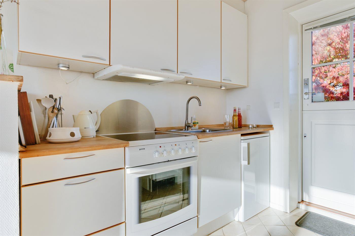 Køkkenet er udstyret med 1 køleskab. Der er 4 keramiske kogeplader, varmluftovn, mikrobølgeovn samt opvaskemaskine.