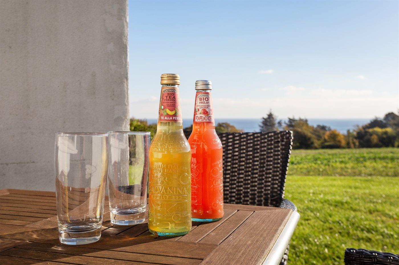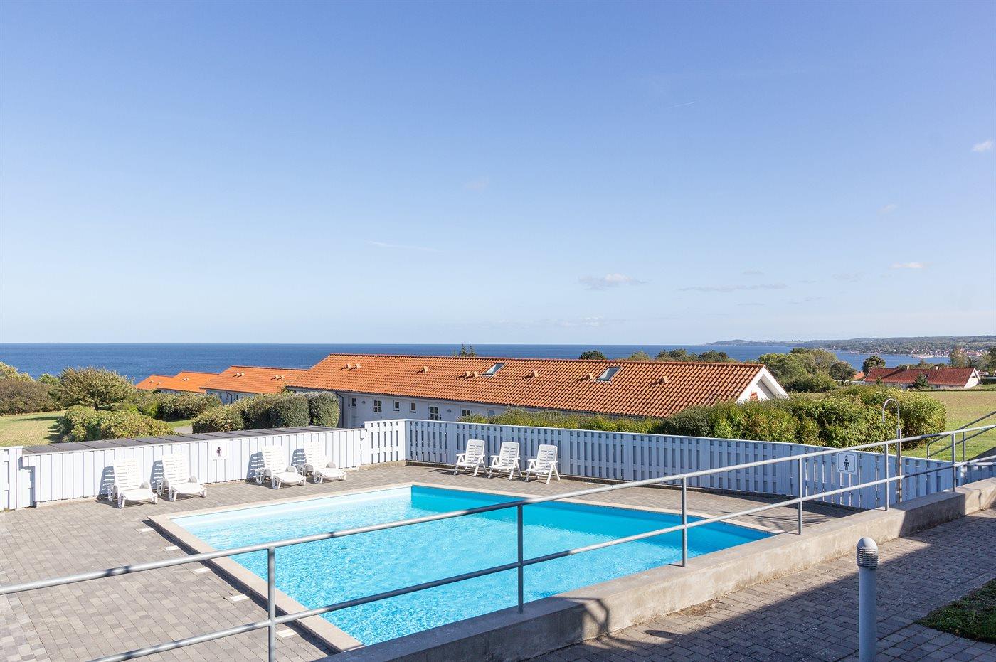 Lys ferielejlighed med havudsigt, terrasse og adgang til opvarmet pool i Boesvang ved Allinge.