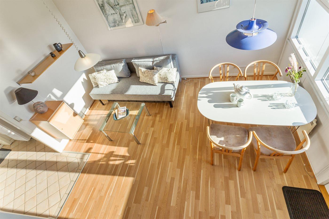 Sovepladserne fordeler sig på:2 sovepladser i dobbeltseng. 2 sovepladser i sovesofa (dobbelt). 2 af disse sovepladser befinder sig i opholdsstuen og 2 af dem befinder sig på hemsen.